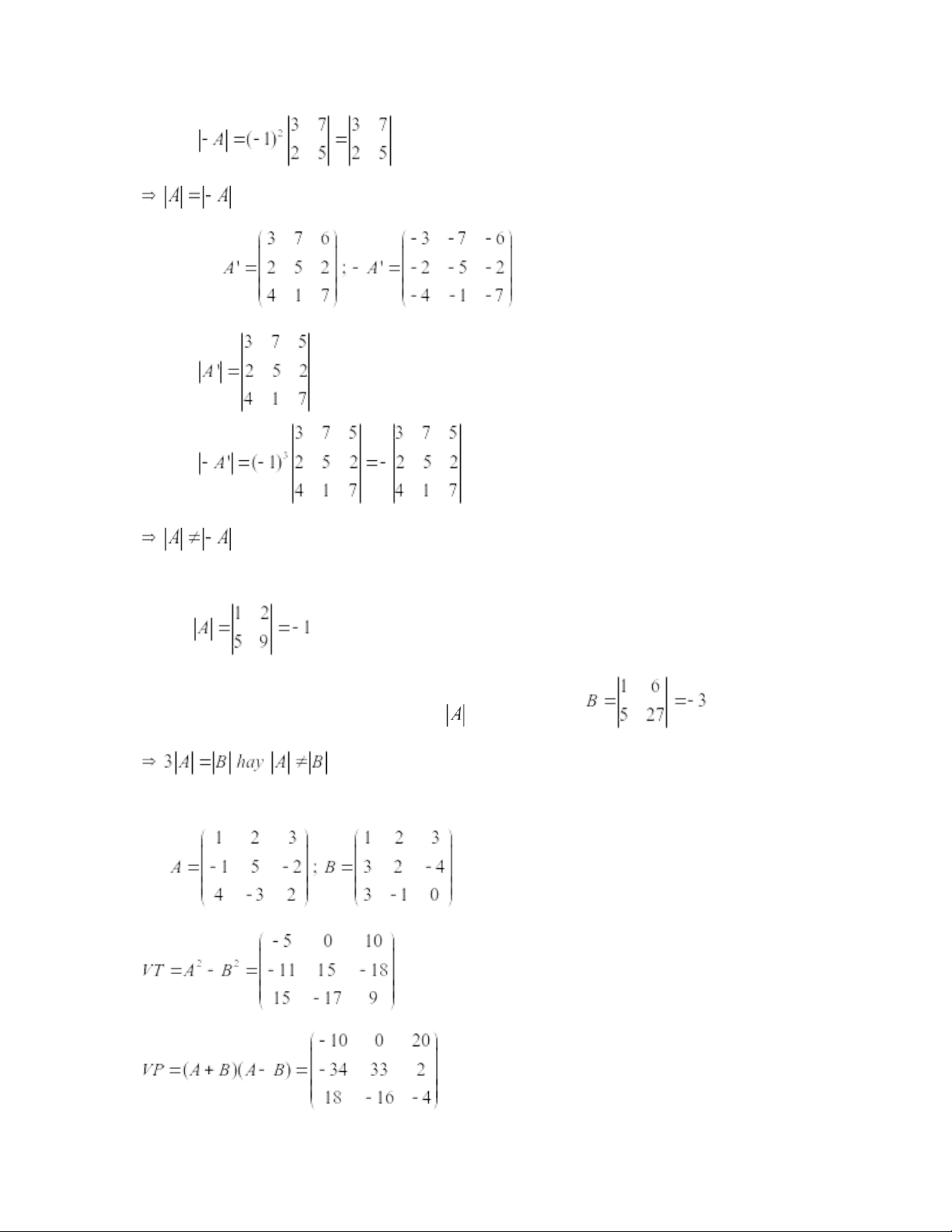 A là một ma trận vuông cấp 3 Vậy Bài 31 (SBT): Cho