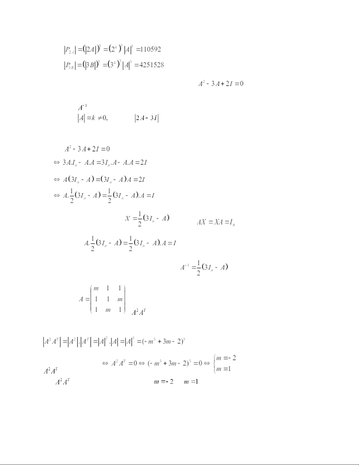Bài 30: Cho A là một ma trận vuông cấp 3 có và . Tính . Giải: Ta có: mà theo đề bài nên