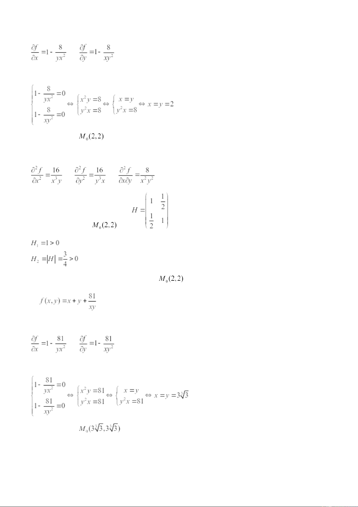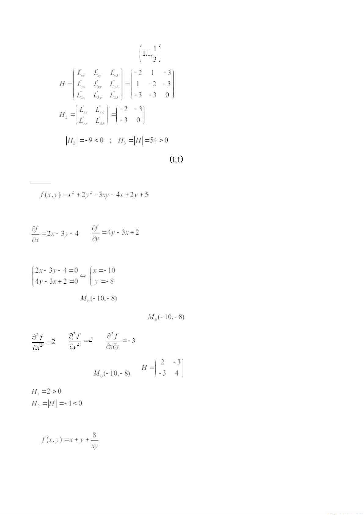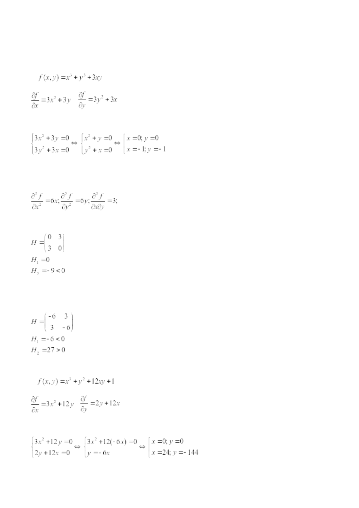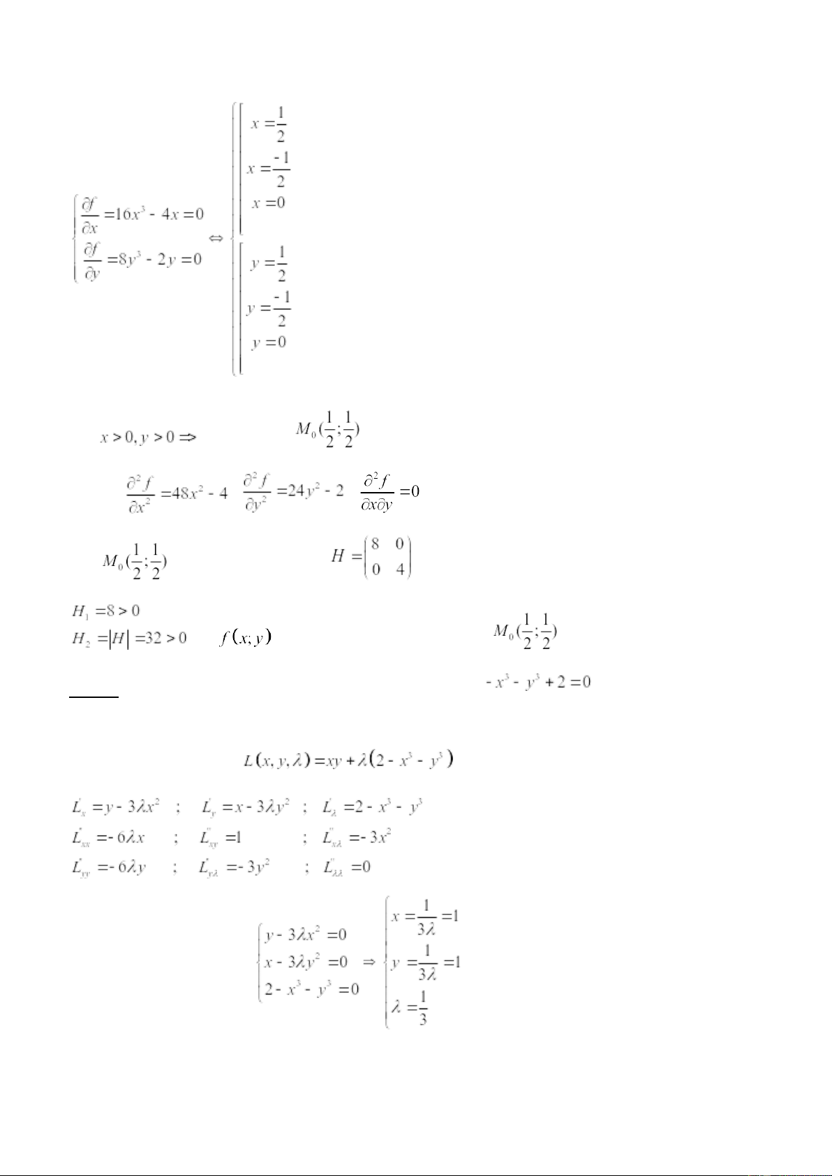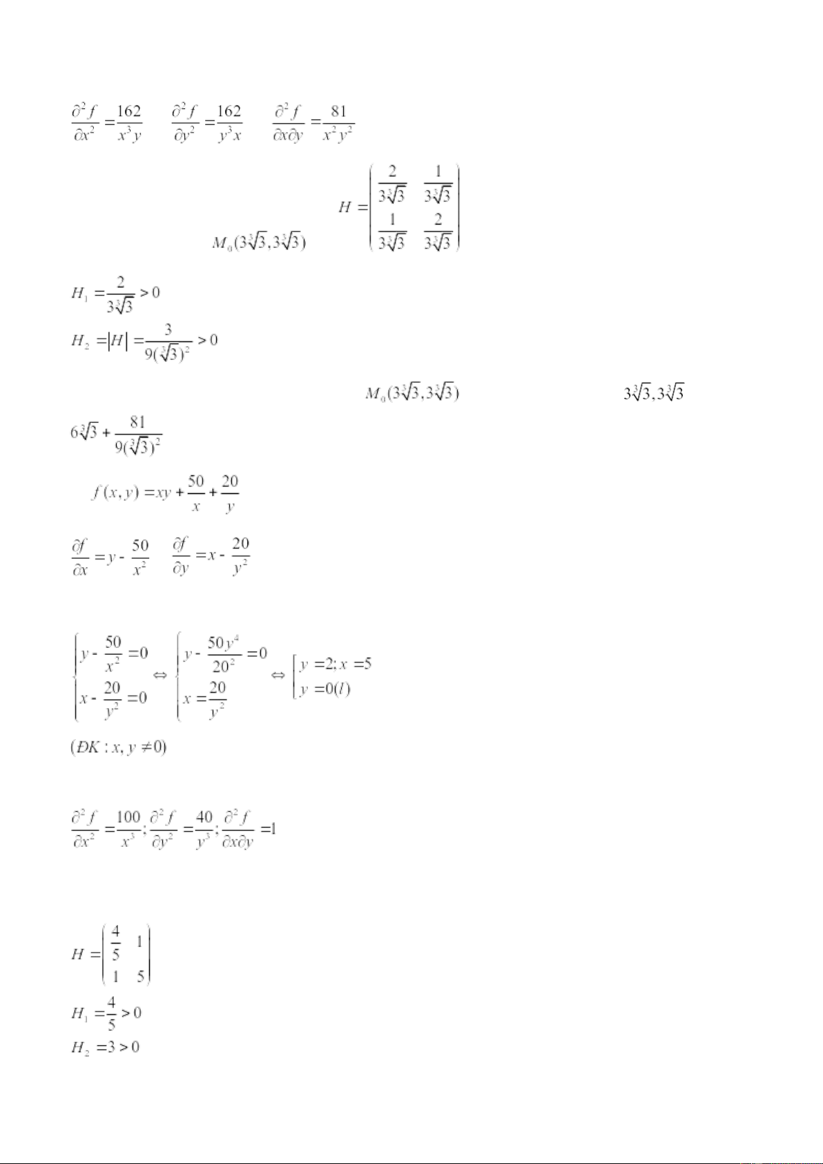2/ f(x,y) =4x4+2y4-2x2-y2, với x>0, y>0 Do Điểm dừng Ta có: ; ; Tại , xét ma trận Hesse: =>