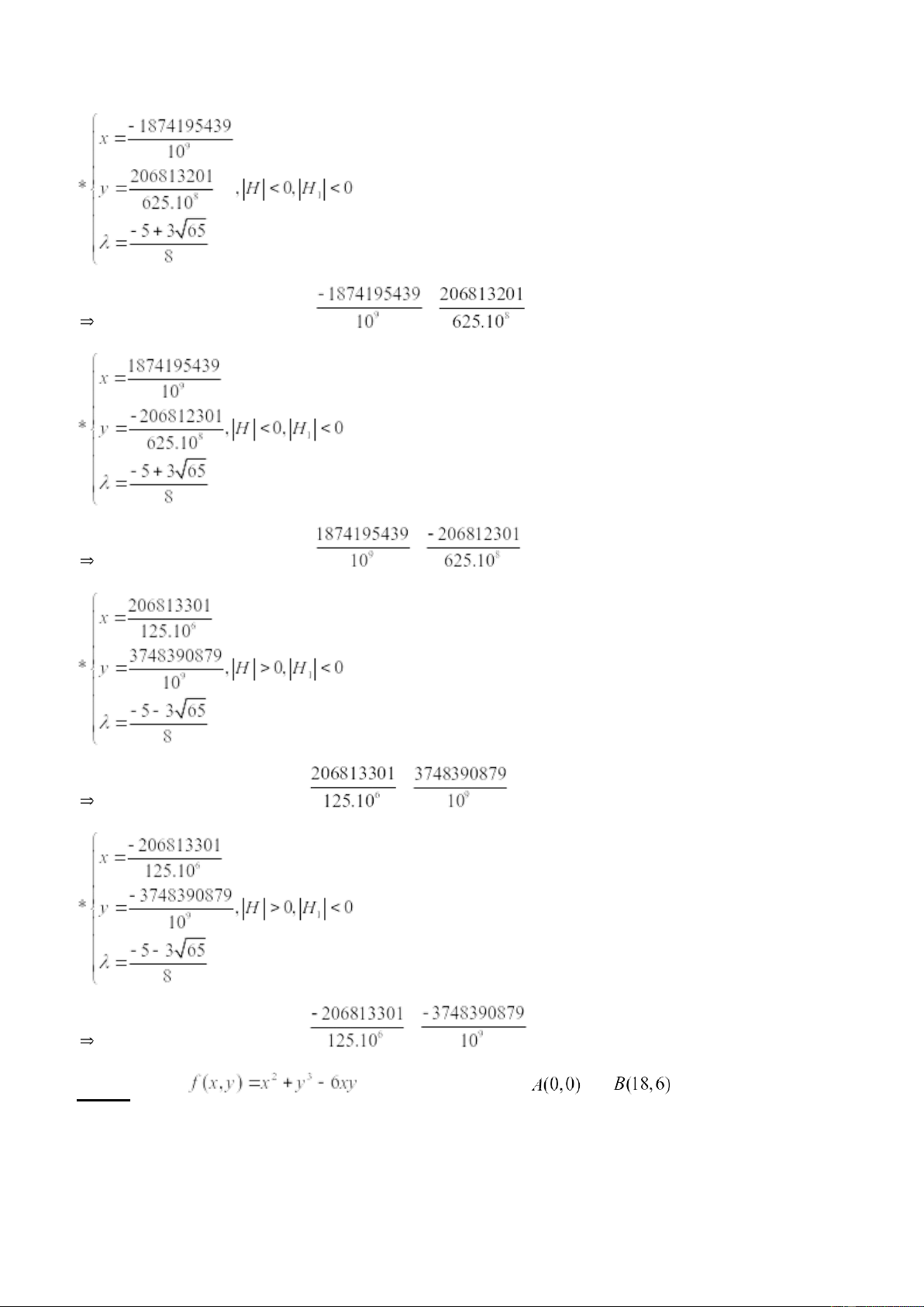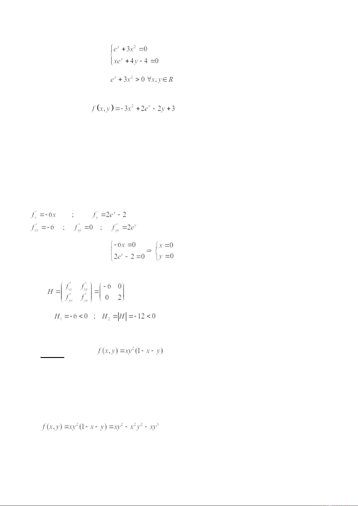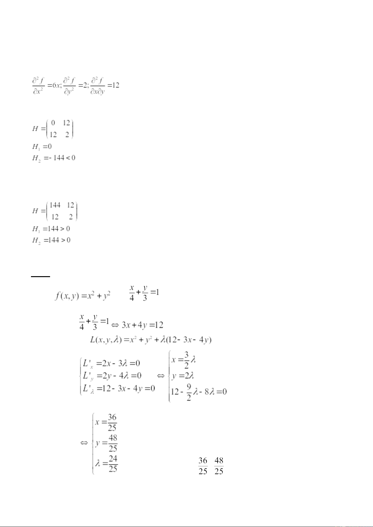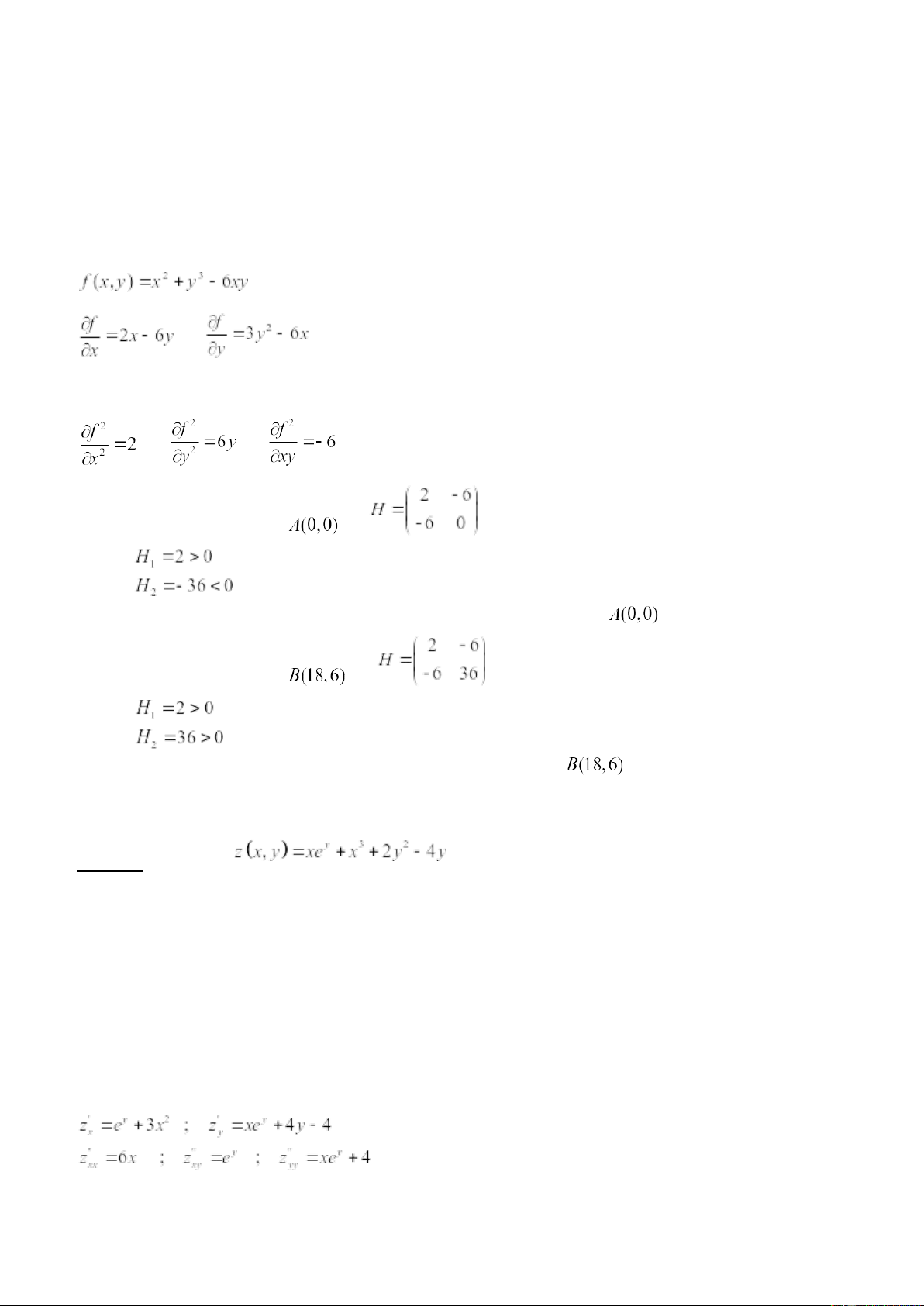 *Tại M1(0,0), ma trận Hesse H=( 2 −6) −6 0 H =2>0 Ta có: 1 { H 2=∣H∣=−36∈0