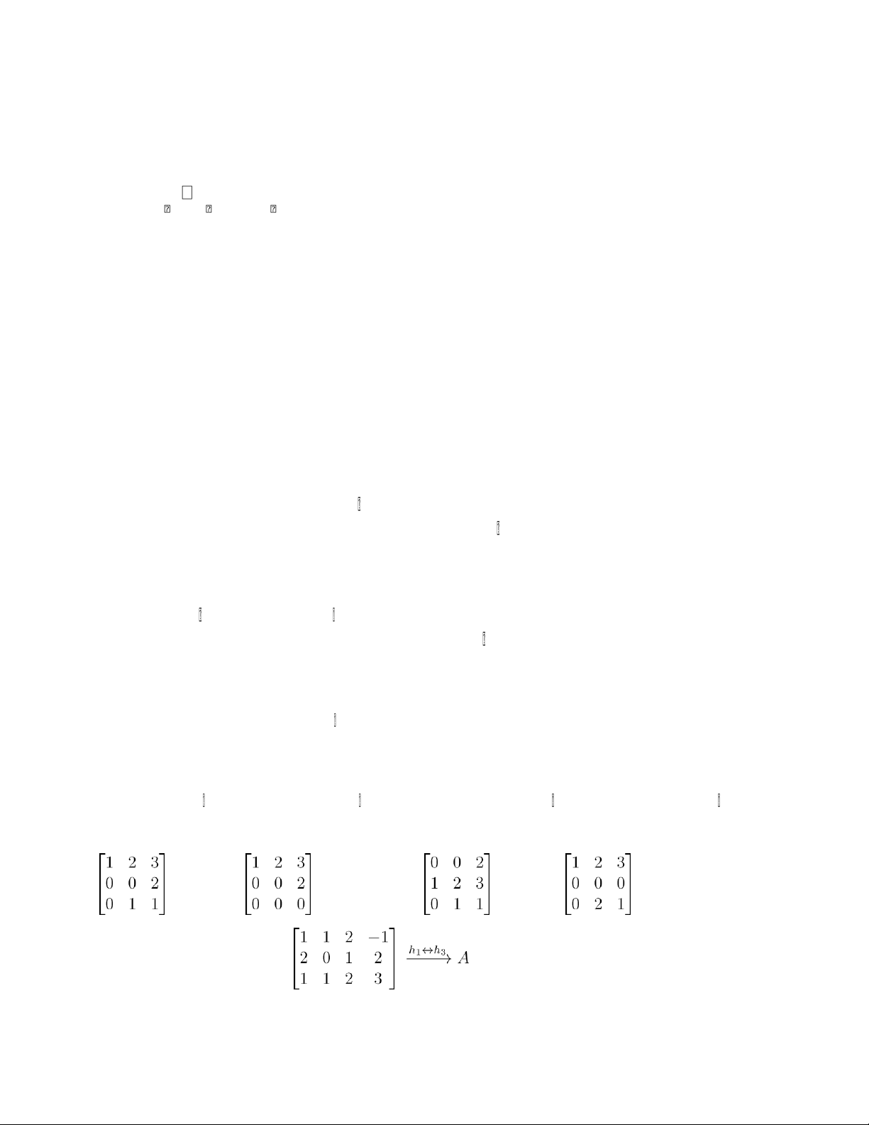 8. Cho ma trận A2x3. Phép biến đổi nào sau đây không phải là phép biến đổi sơ cấp hàng trên A? A. h 2h B. h 0h C. h h + 2h D. h S h 1 1 1 1 1 1 2 1 2