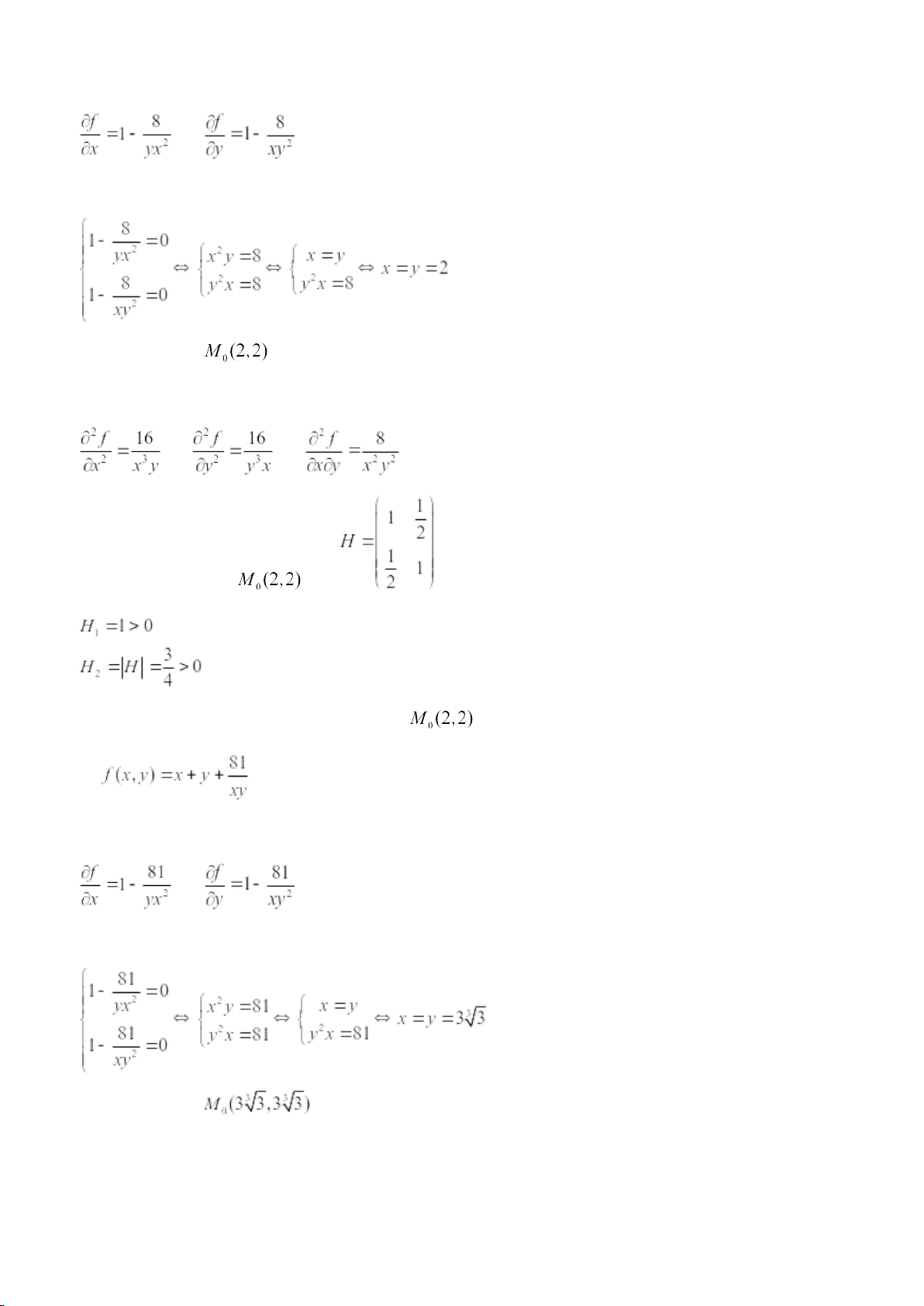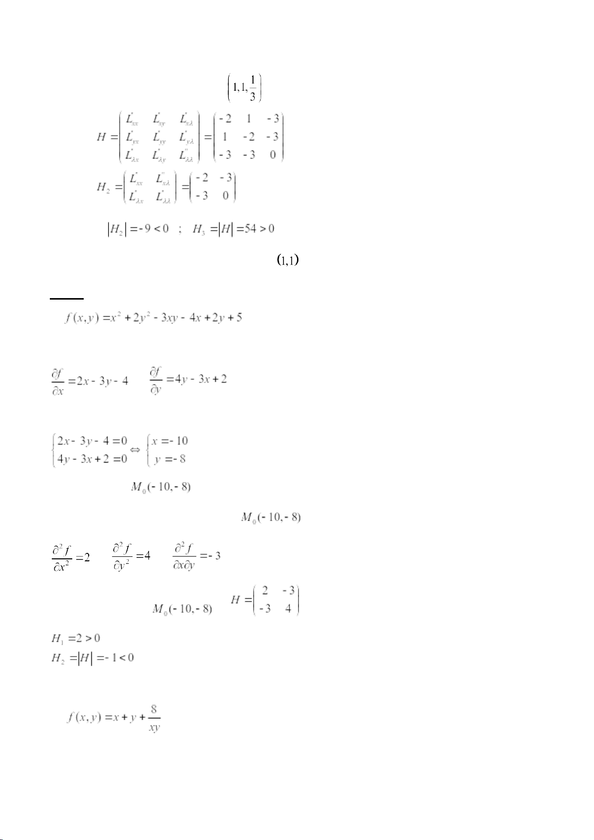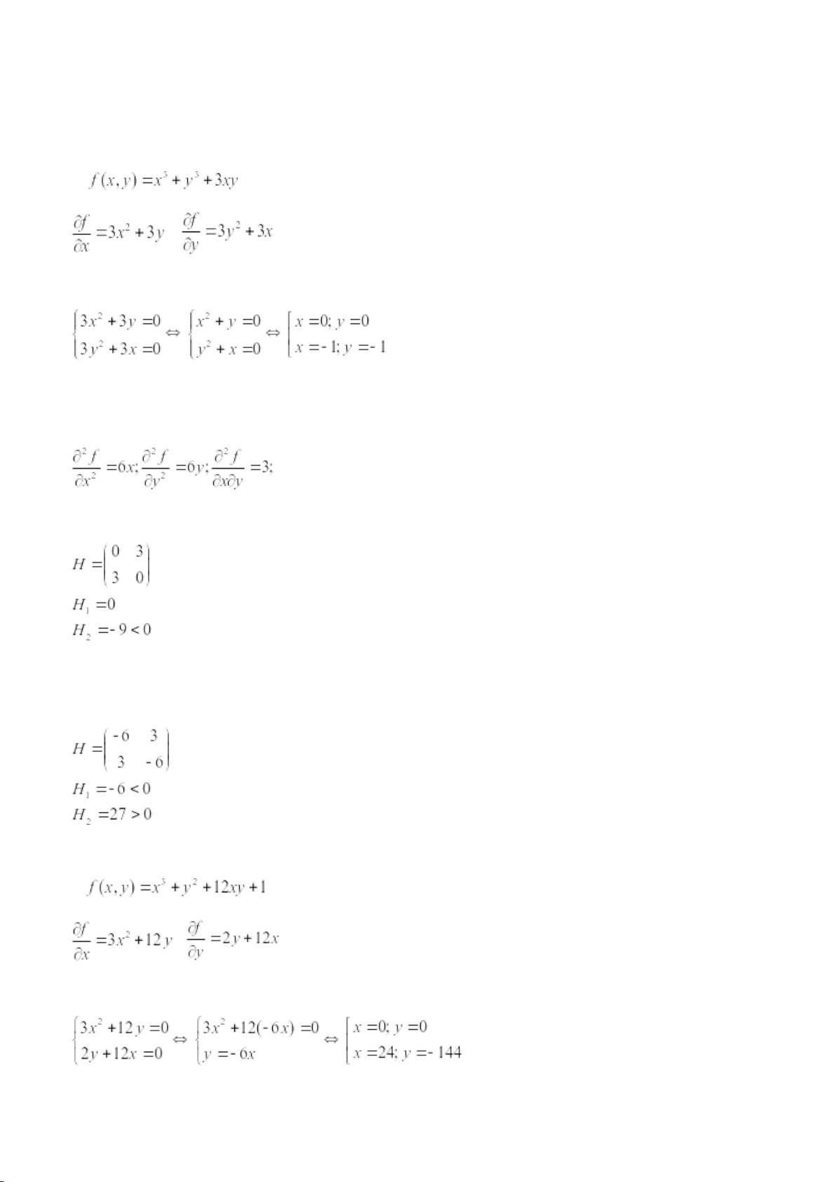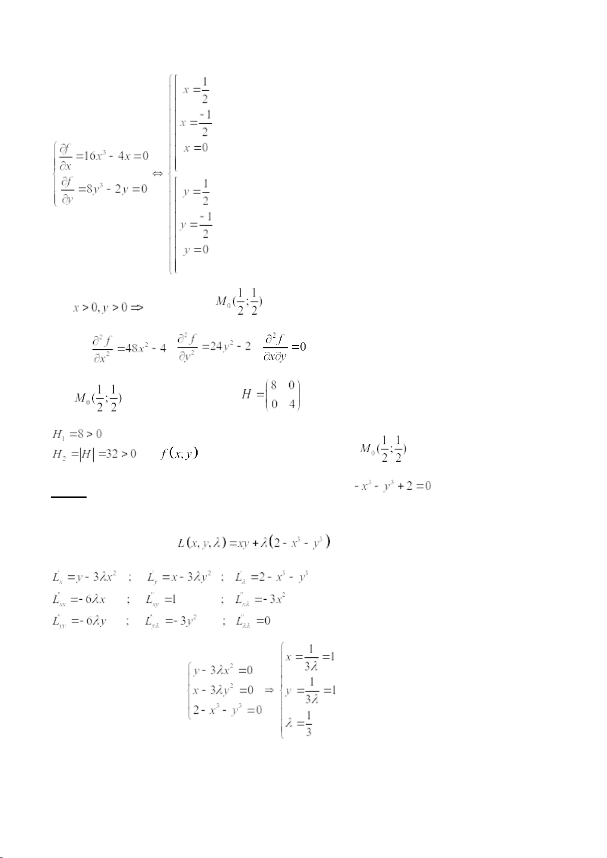 2/ f(x,y) =4x4+2y4-2x2-y2, với x>0, y>0 Do Điểm dừng Ta có: ; ; Tại , xét ma trận Hesse: =>