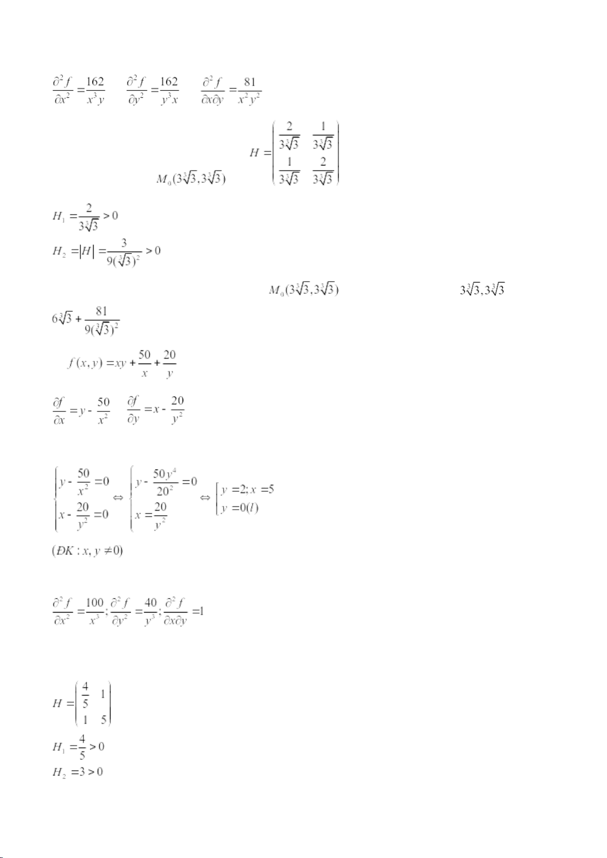 *Tại M2(18,6), ma trận Hesse H=( 2 −6) −6 36 H =2>0 Ta có: 1 { H 2=∣H∣=36>0
