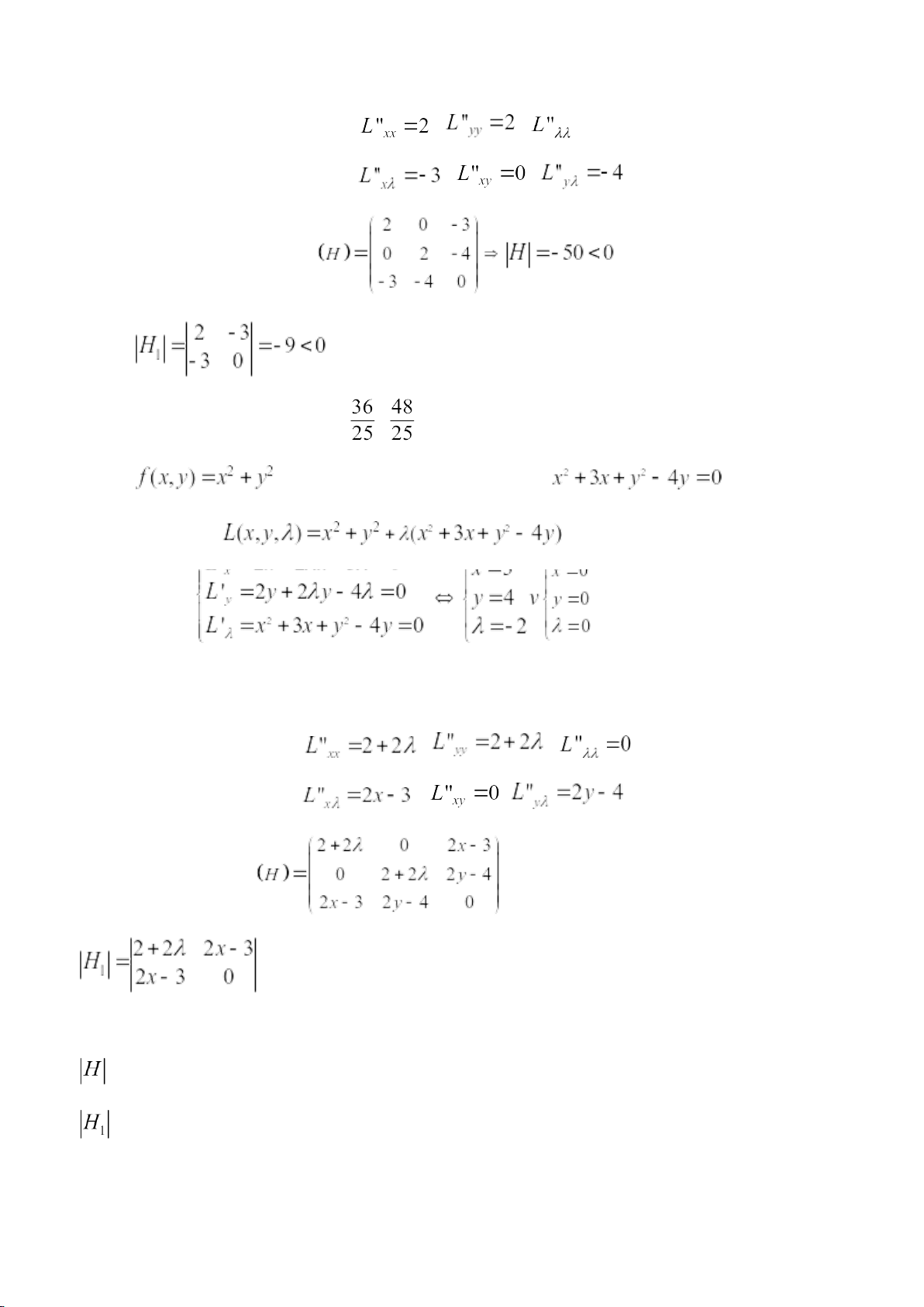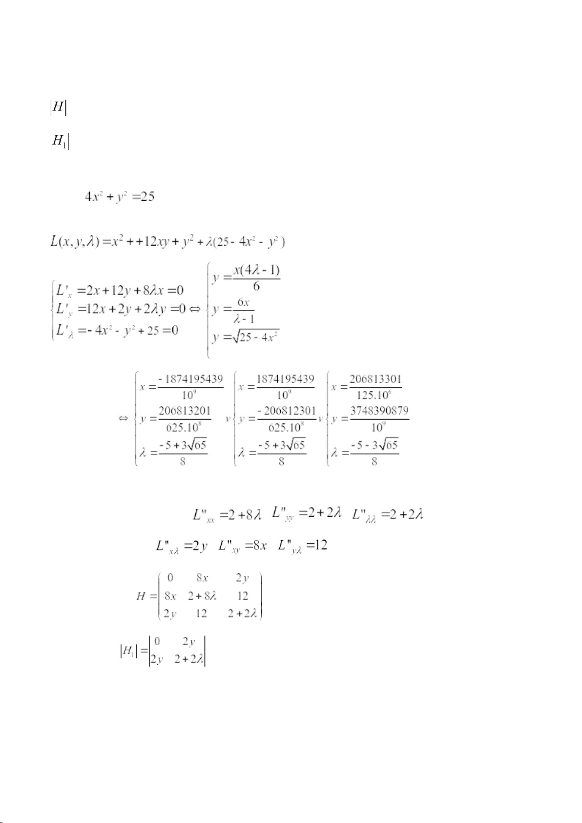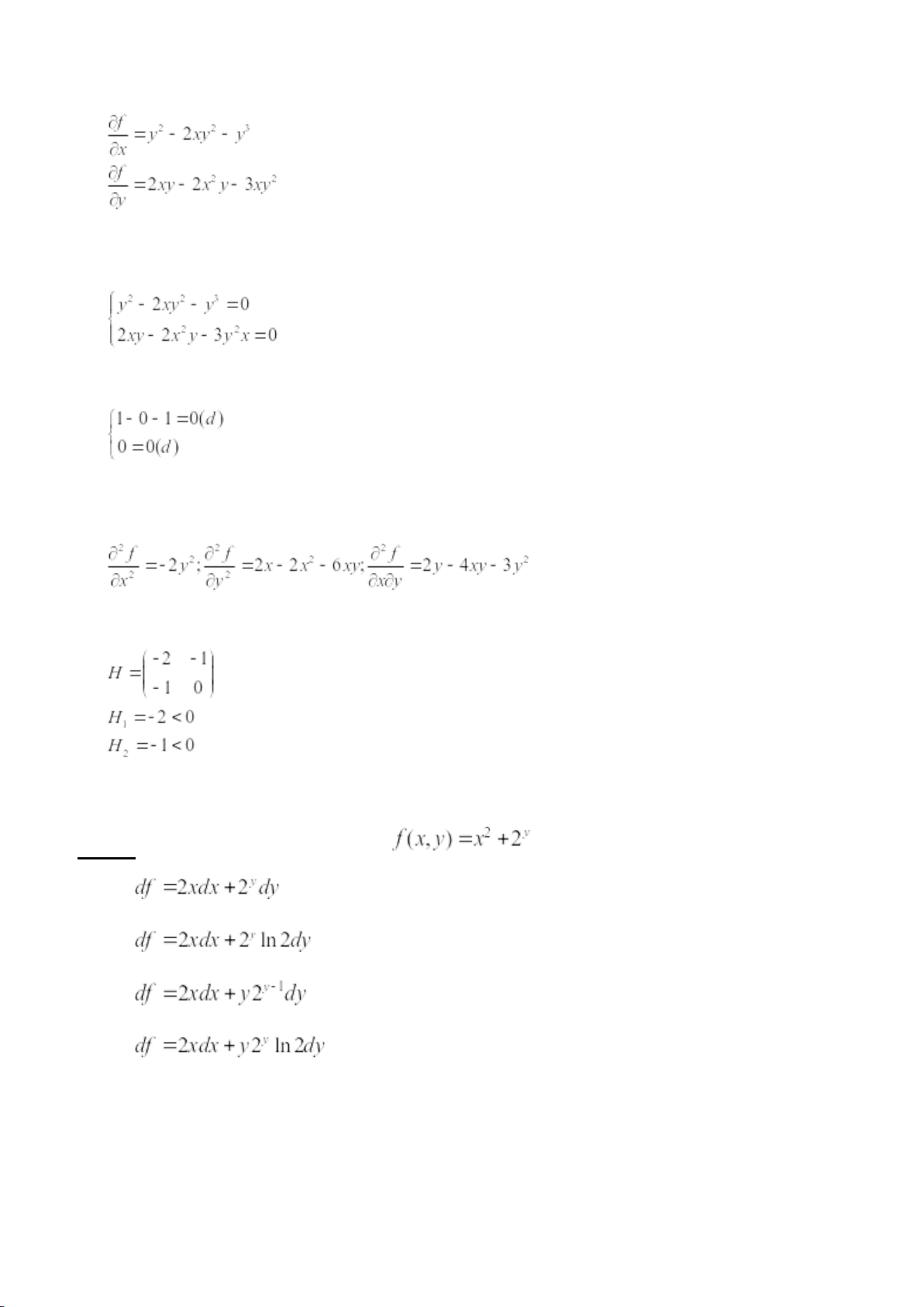 *Tại M1(0,0), ma trận Hesse H=( 2 −6) −6 0 H =2>0 Ta có: 1 { H 2=∣H∣=−36∈0