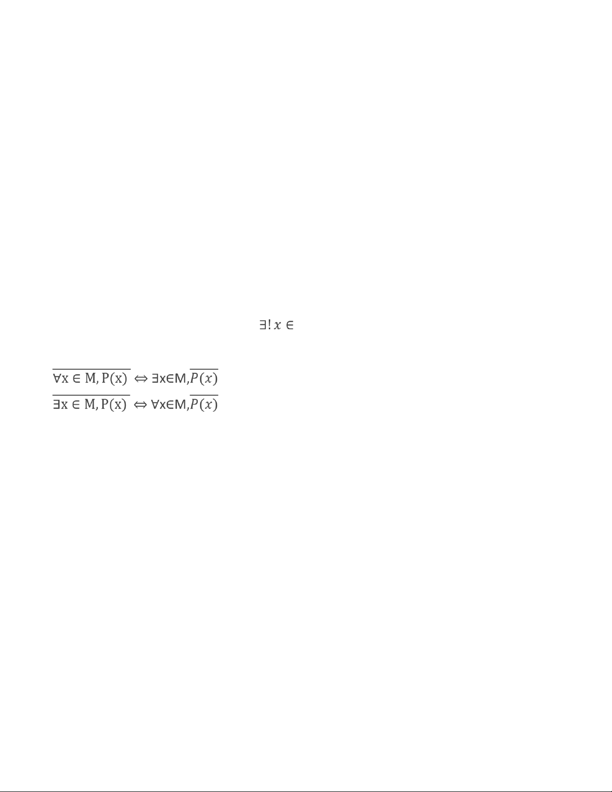 * Mệnh đề "Tồn tại duy nhất một phần tử x của X có tính chất P(x)" được viết như sau: 𝑀, 𝑃(𝑥)