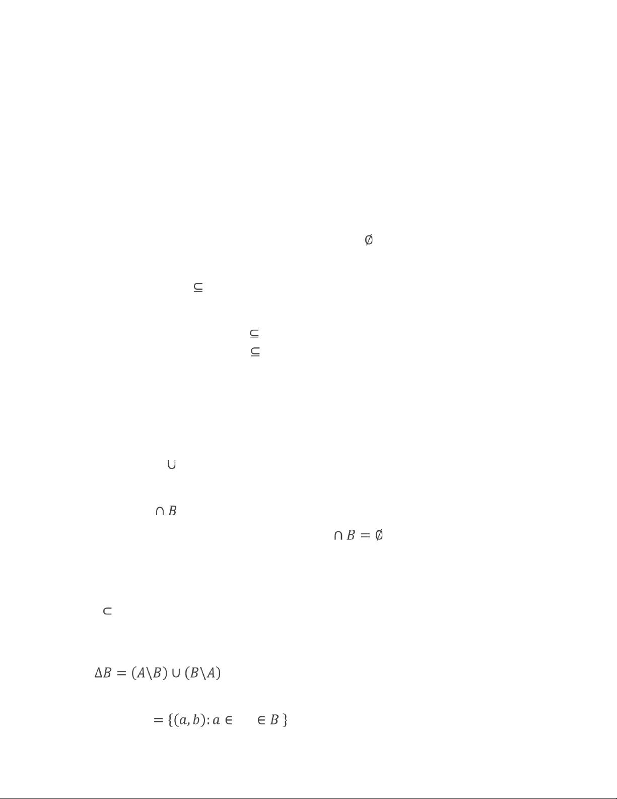 - Tích Đề-các: Tích Đề-các của tập hợp A với B là một tập hợp được ký hiệu và xác định như sau: 𝐴 × 𝐵 𝐴, 𝑏 . lOMoAR cPSD| 58569740 + Đặc biệt 𝐴 × 𝐴