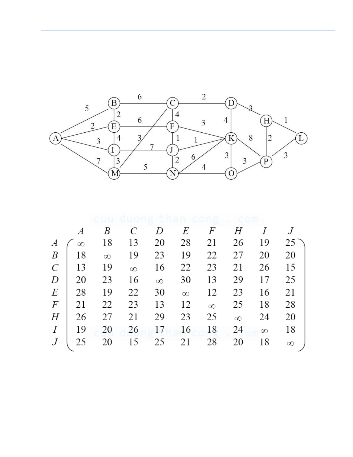 55) Cho đồ thị G = (V, E) , V = { v1, v2, v3, v4, v5, v6 , v7 ,v8,v9,v10} có ma trận khoảng cách là 7 t TS. NGUYỄN VIẾT ĐÔNG BÀI TẬP TOÁN RỜI RẠC January 18, 2016