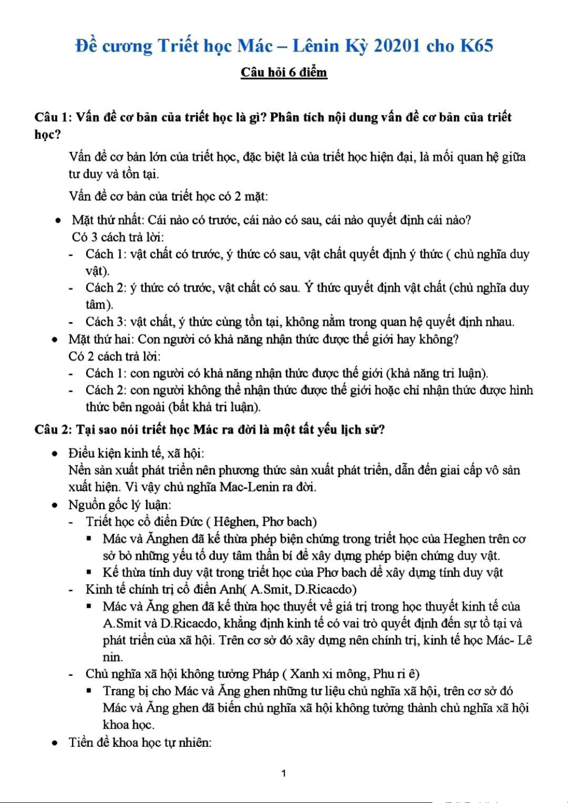 Đề Cương Câu Hỏi Môn Triết học Mác - Lênin | Đại học Bách Khoa Hà Nội