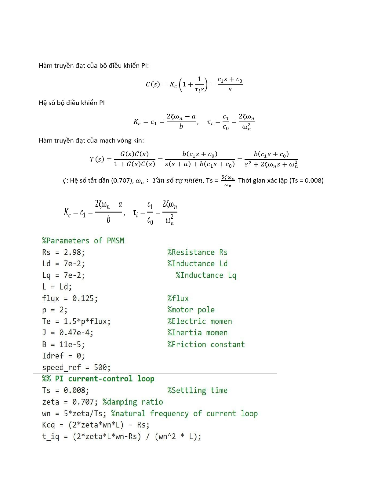 • PID cho mạch vòng dòng điện và mạch vòng tóc độ