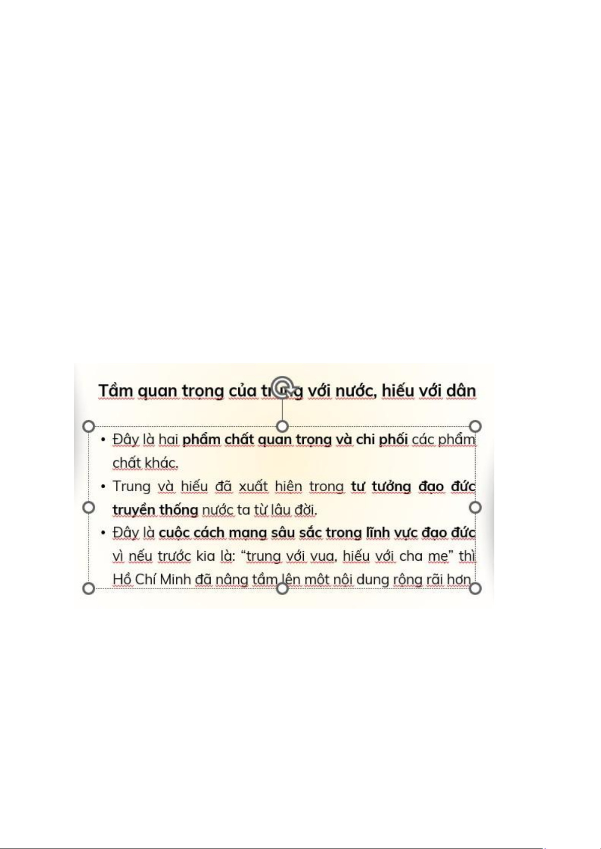 Việt Nam hiện nay, đó là: yêu nước, nhân ái, nghĩa tình, trung thực, đoàn kết, cần cù, sáng tạo.
