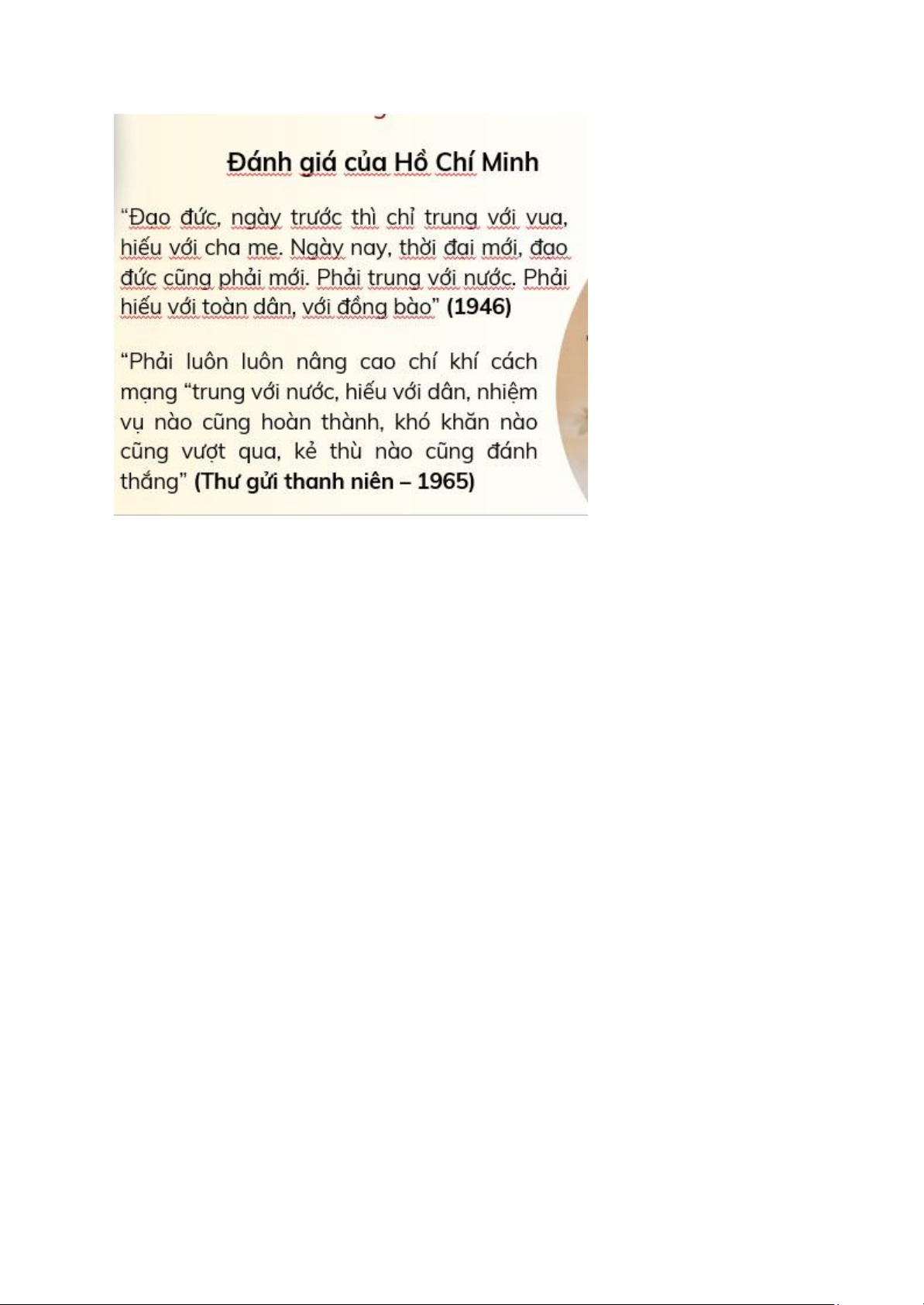 đó là cần, kiệm, liêm, chính, chí công vô tư, những tác phong đẹp đẽ của đạo đức như khiêm
