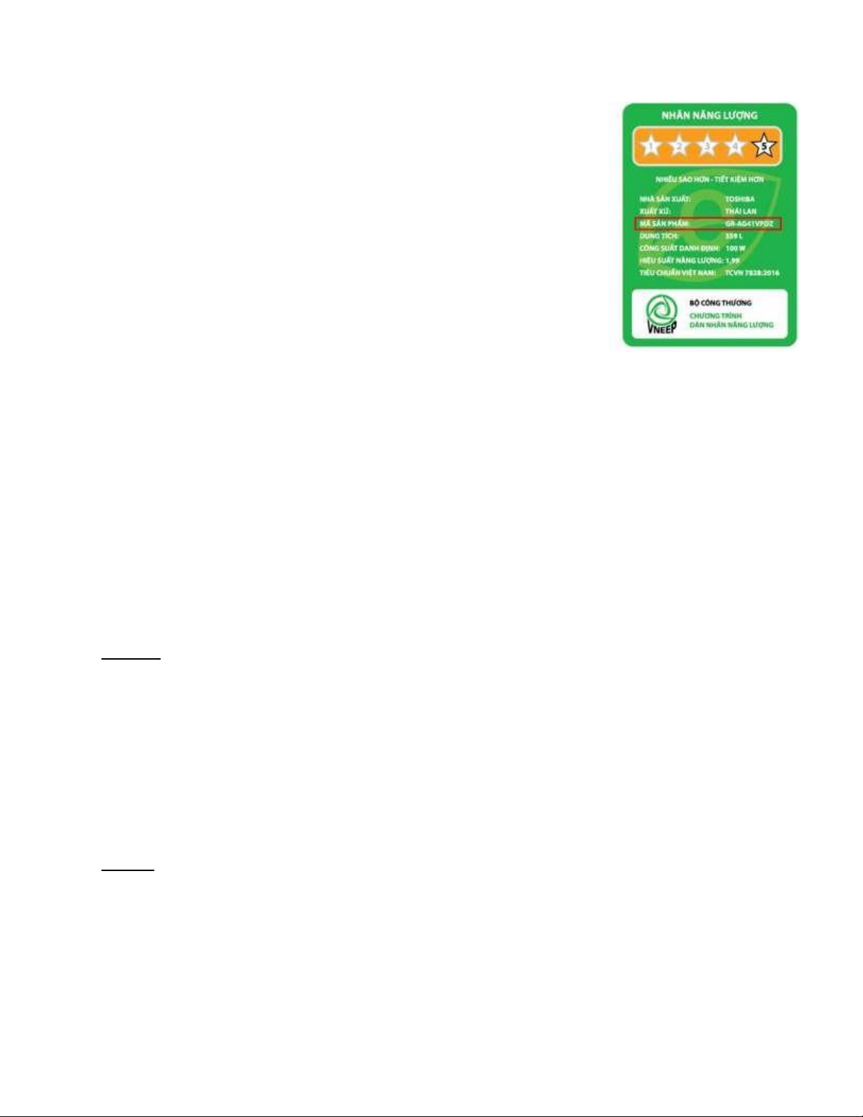 nhãn hiệu của tủ lạnh nhà An có ghi hiệu suất năng lượng (hệ số