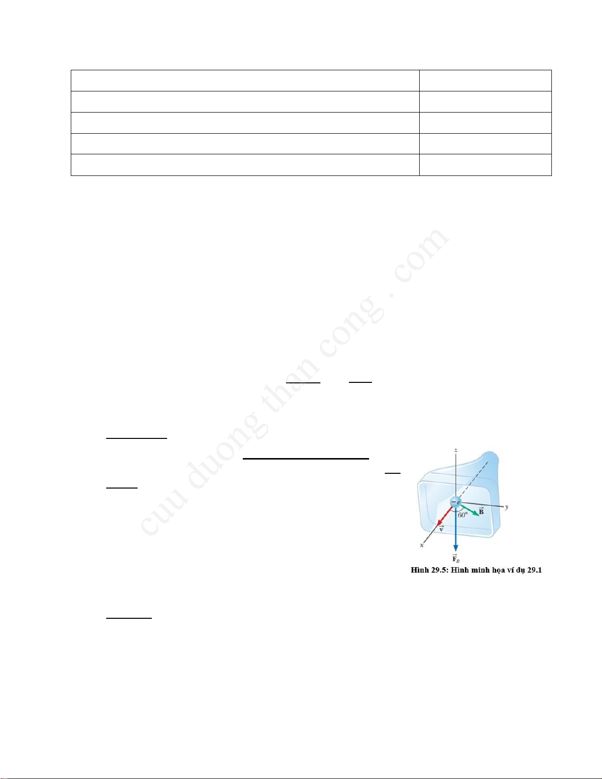 Bảng 29.1: Giá trị gần đúng của một số từ trường thông dụng Nguồn từ trường