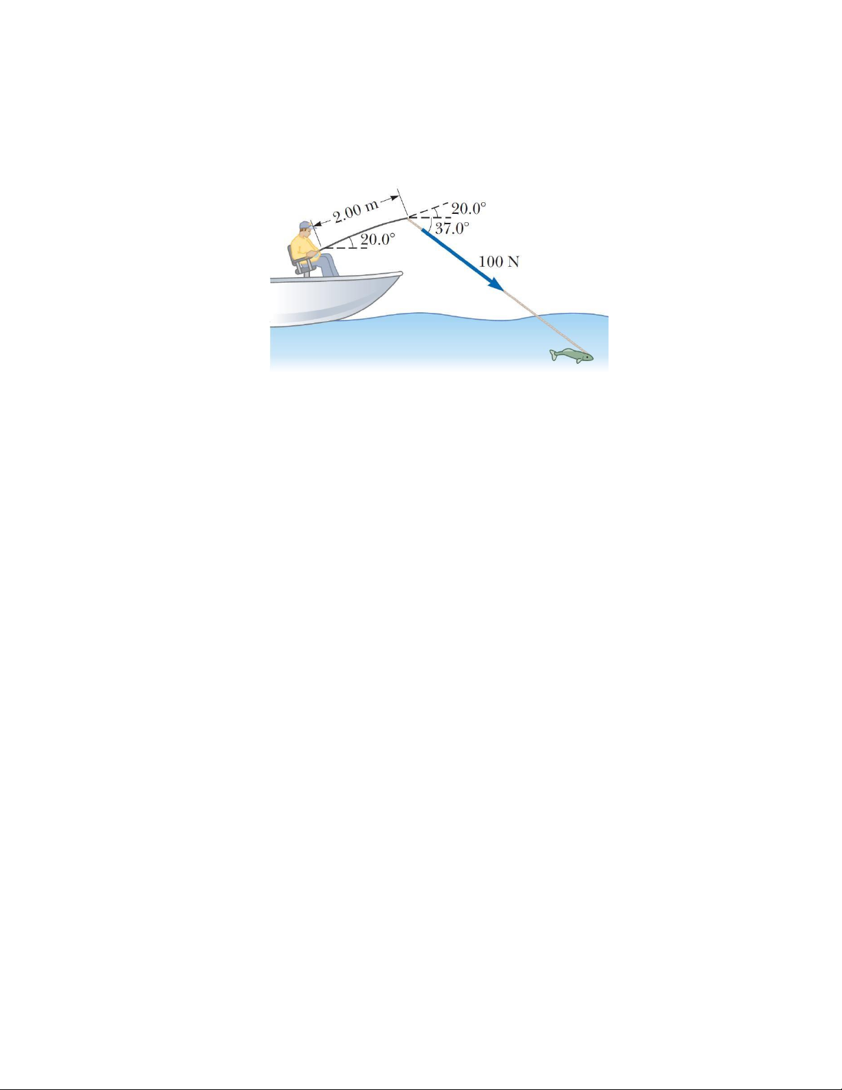 phương ngang) như hình vẽ. Biết cần câu dài 2 m. Con cá đã tác dụng một moment lực có giá