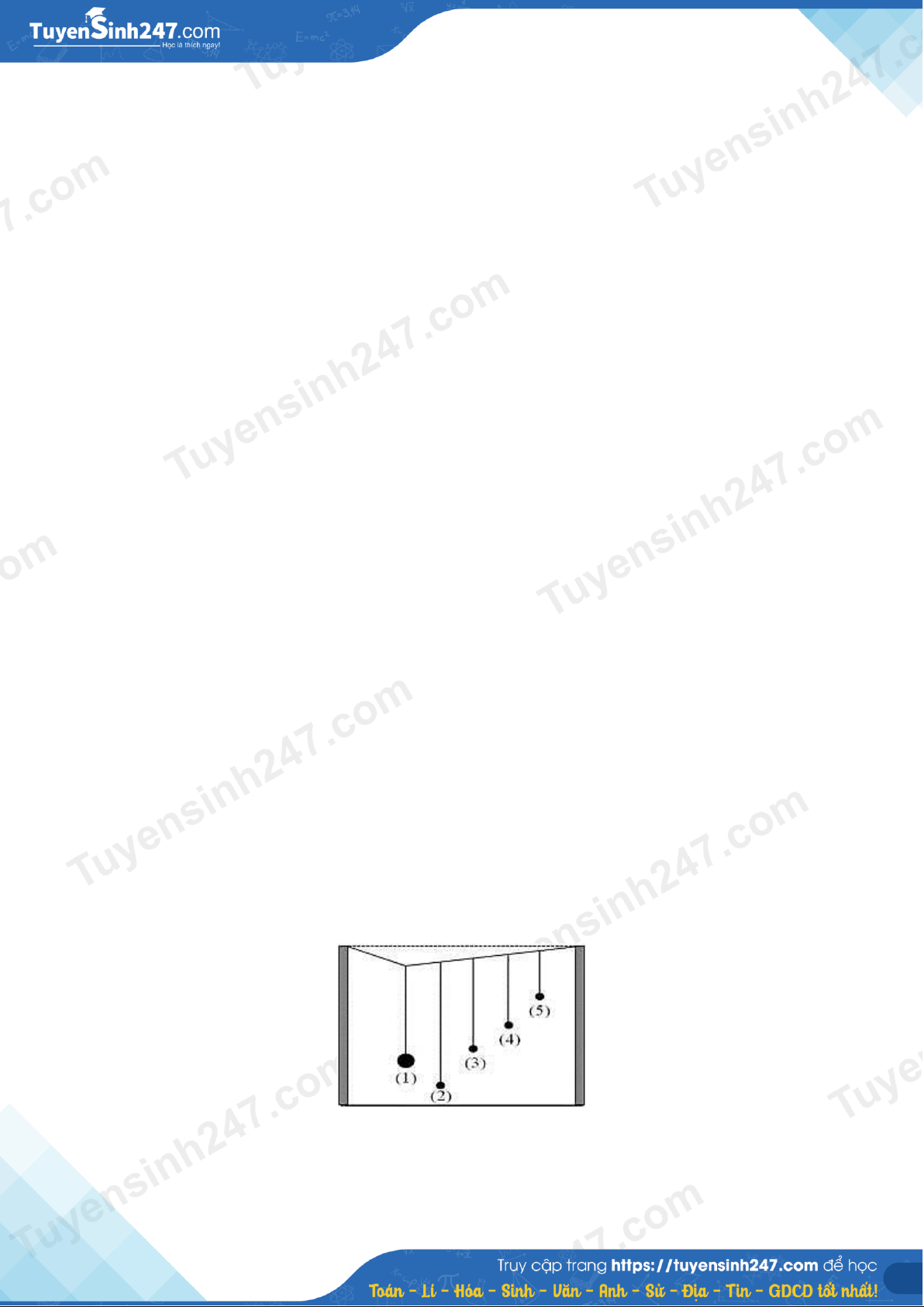 Câu 15: (ID: 566390) Khi làm thực hành về hiện tượng cộng hưởng cơ ta có hệ thống các con lắc đơn bố trí