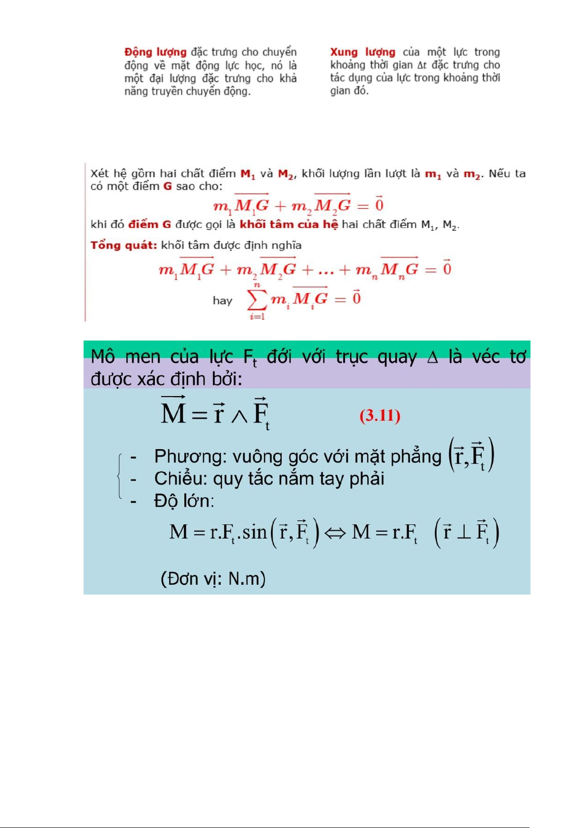 - Viết biểu thức xác định khối tâm của hệ chất điểm và vật rắn.