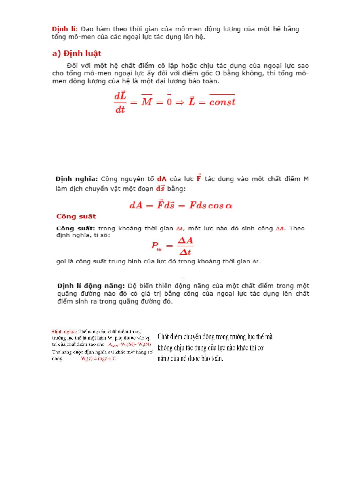 - Định nghĩa thế năng, phát biểu định luật bảo toàn cơ năng trong trường lực thế.
