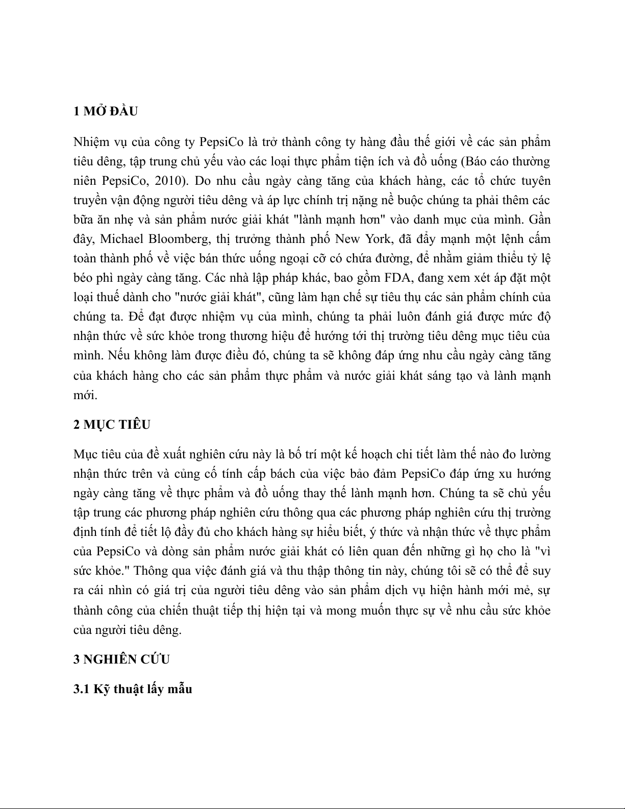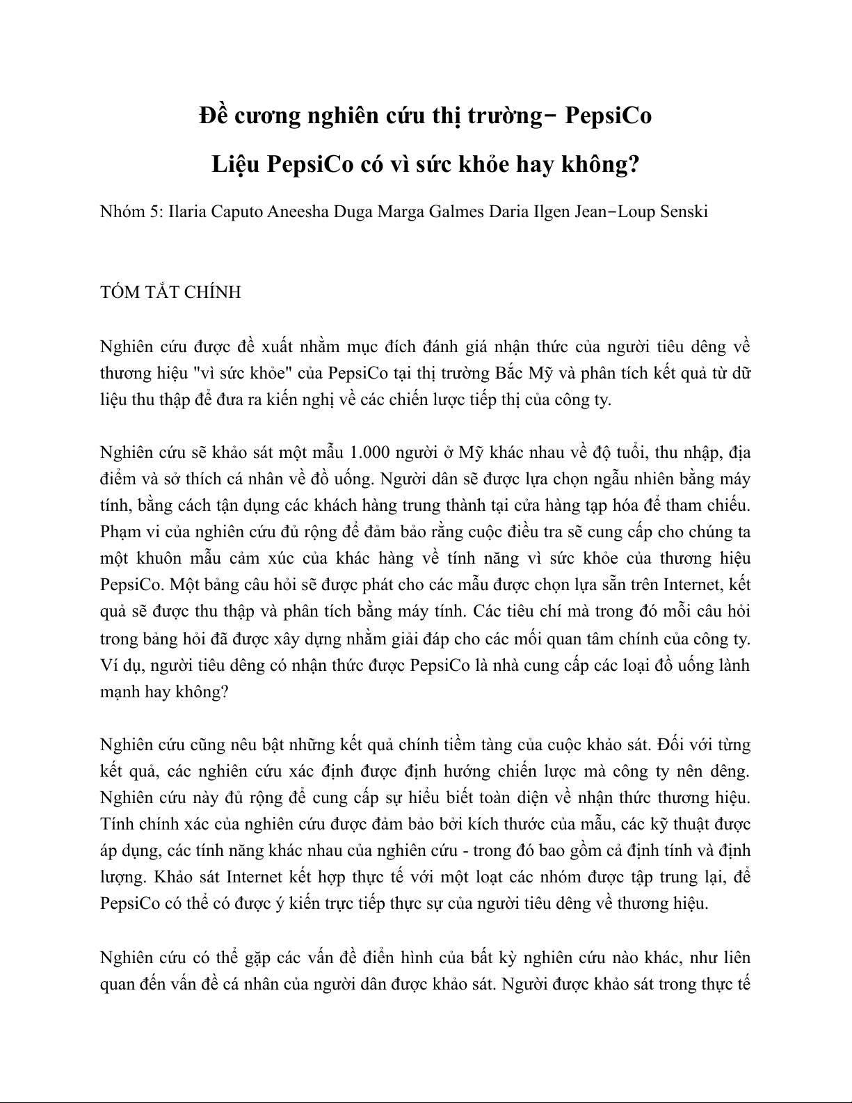 Đề cương nghi•n cứu thị trường- PepsiCo