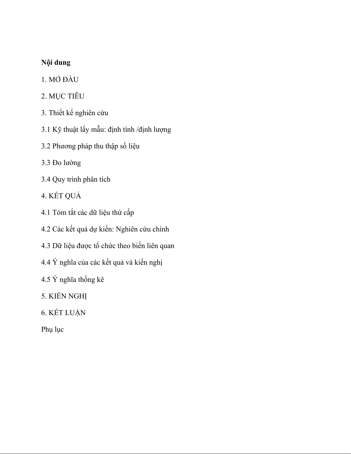 4.2 C‡c kết quả dự kiến: Nghi•n cứu ch’nh 4.3 Dữ liệu được t ch ổ ức theo biến li•n quan 4.4 Ý nghĩa c a c‡c k ủ ết quả vˆ kiến nghị 4.5 Ý nghĩa th ng k• ố 5. KIẾN NGHỊ 6. KẾT LUẬN Phụ l c ụ ! 1 MỞ ĐẦU Nhiệm v ụ c a