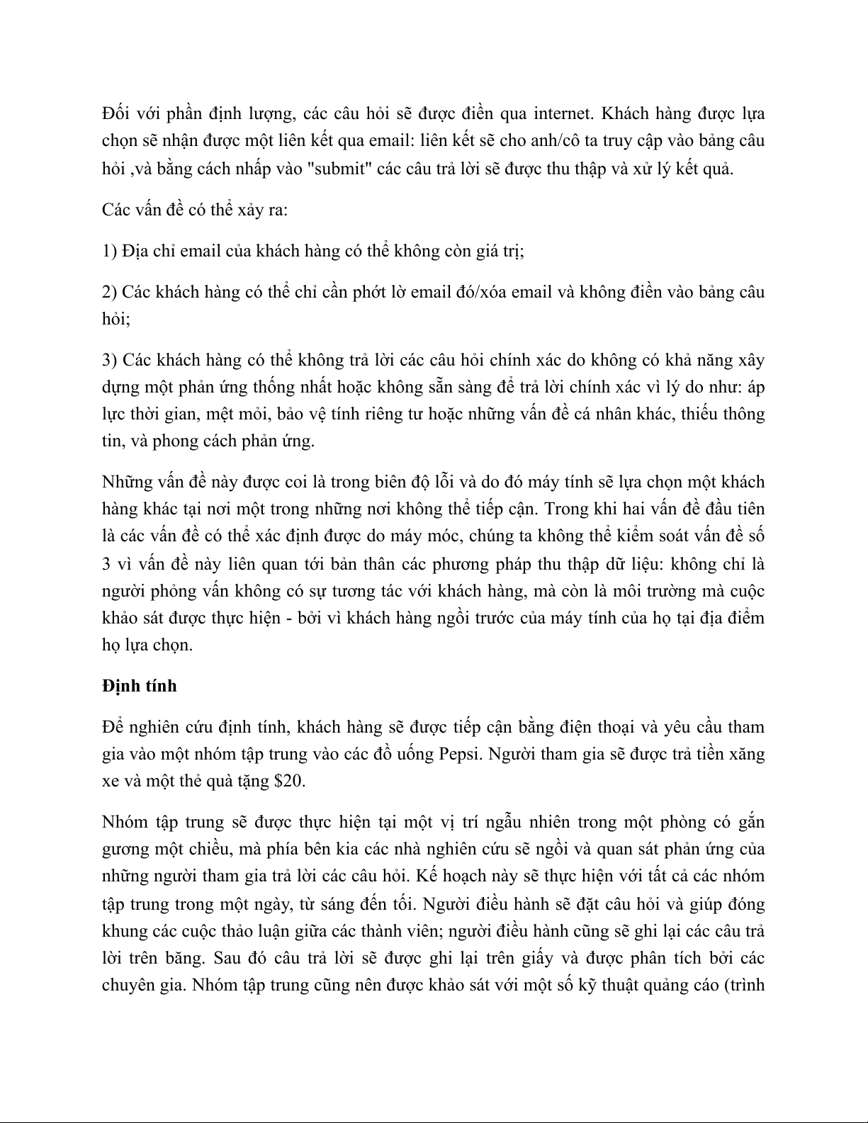 Để nghi•n cứu định t’nh, kh‡ch hˆng sẽ được tiếp cận bằng điện thoại vˆ y•u cầu tham gia vˆo m t