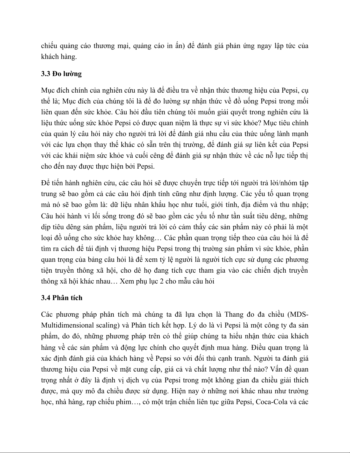 Multidimensional scaling) vˆ Ph‰n t’ch kết hợp. L ý do lˆ v“ Pepsi lˆ m t ộ c™ng ty a đ sản phẩm, do —, đ