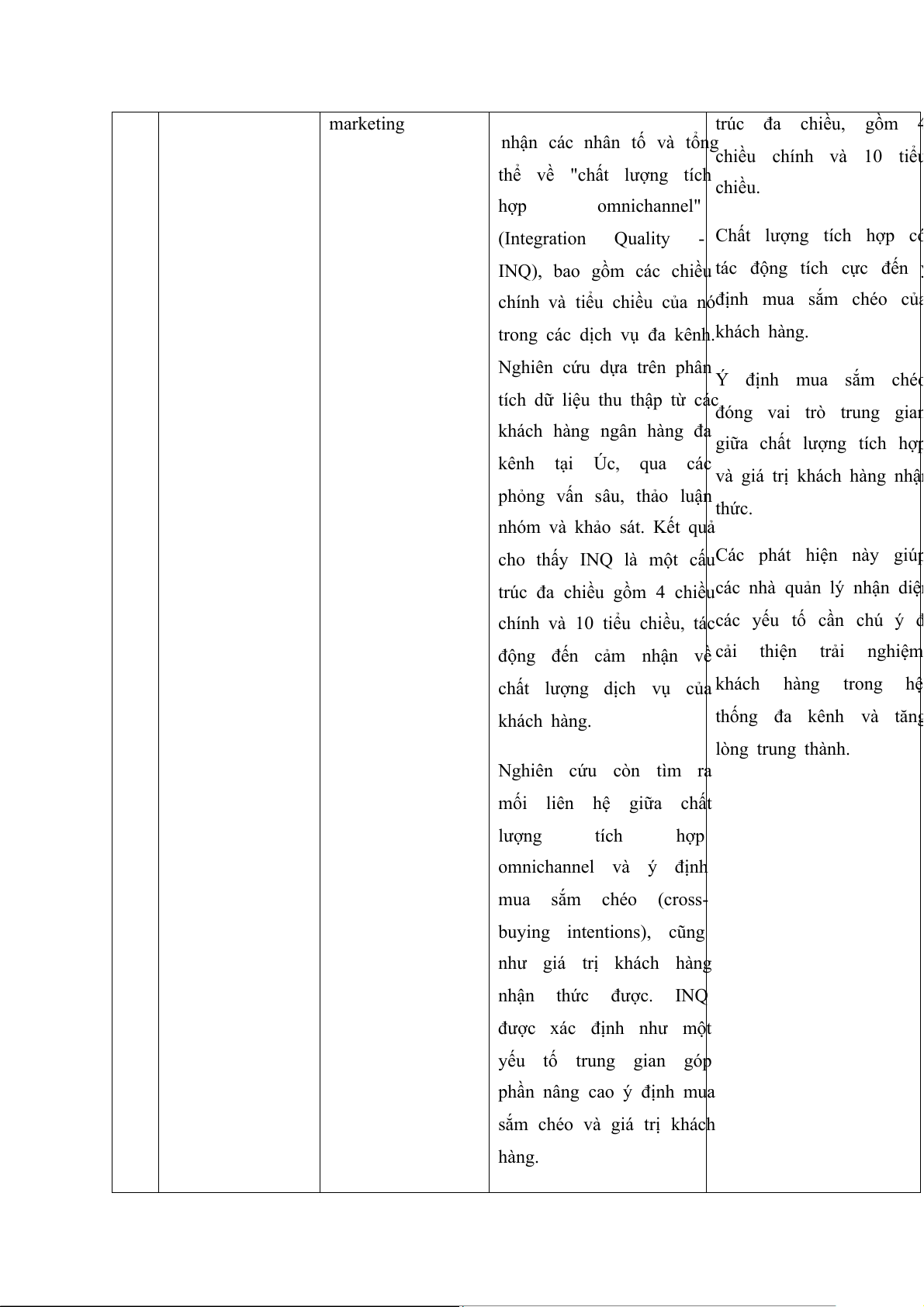 chất lượng dịch vụ của khách hàng trong hệ khách hàng. thống đa kênh và tăng lòng trung thành. Nghiên cứu còn tìm ra mối liên hệ giữa chất lượng tích hợp omnichannel và ý định mua sắm chéo (cross- buying intentions), cũng như giá trị khách hàng nhận thức được. INQ