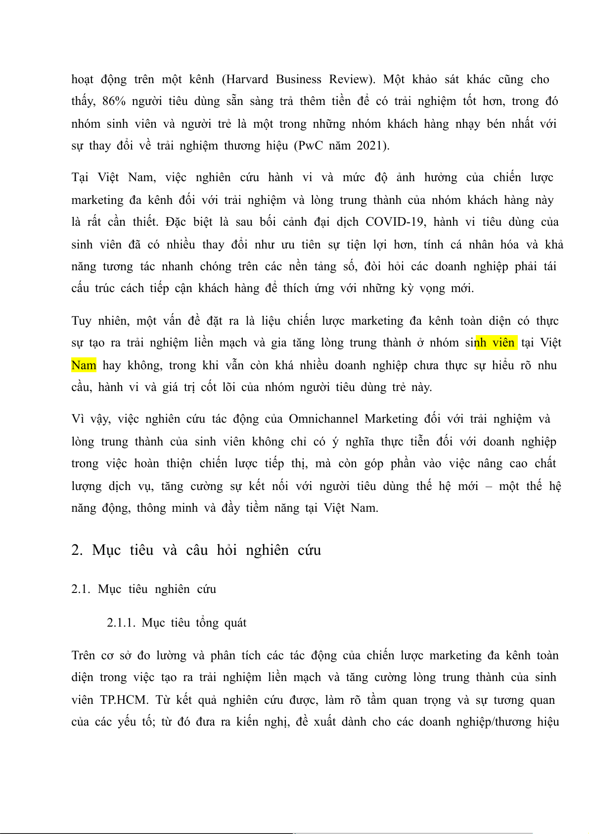lòng trung thành của phân khúc sinh viên TP.HCM. 2.1.2. Mục tiêu cụ thể