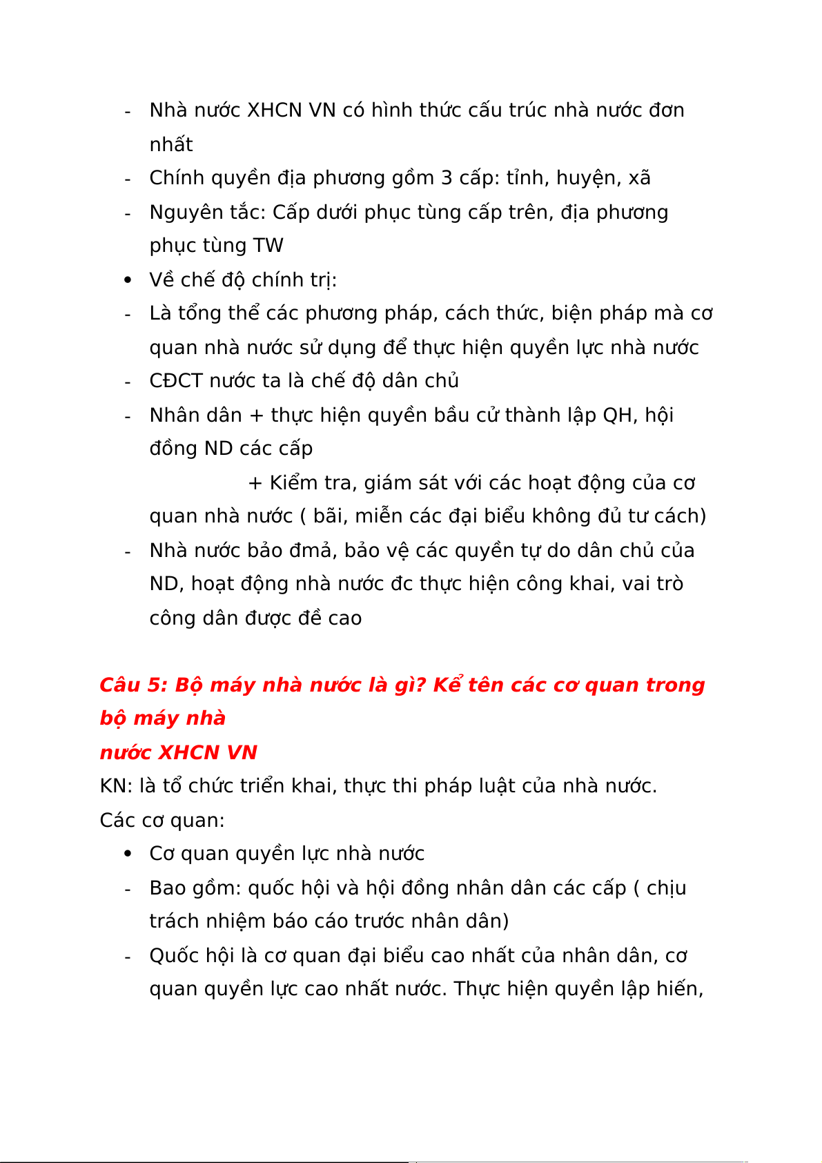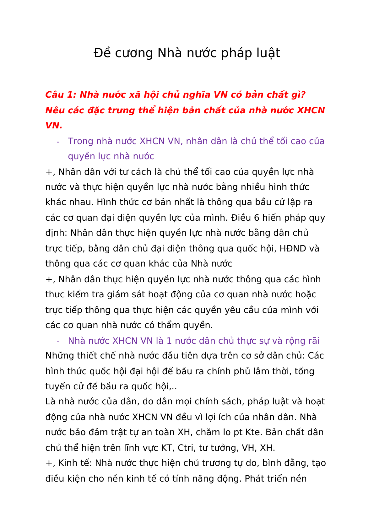 Câu 1: Nhà nước xã hội chủ nghĩa VN có bản chất gì?