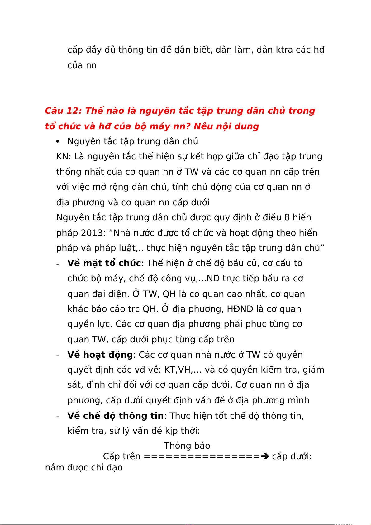 Câu 12: Thế nào là nguyên tắc tập trung dân chủ trong