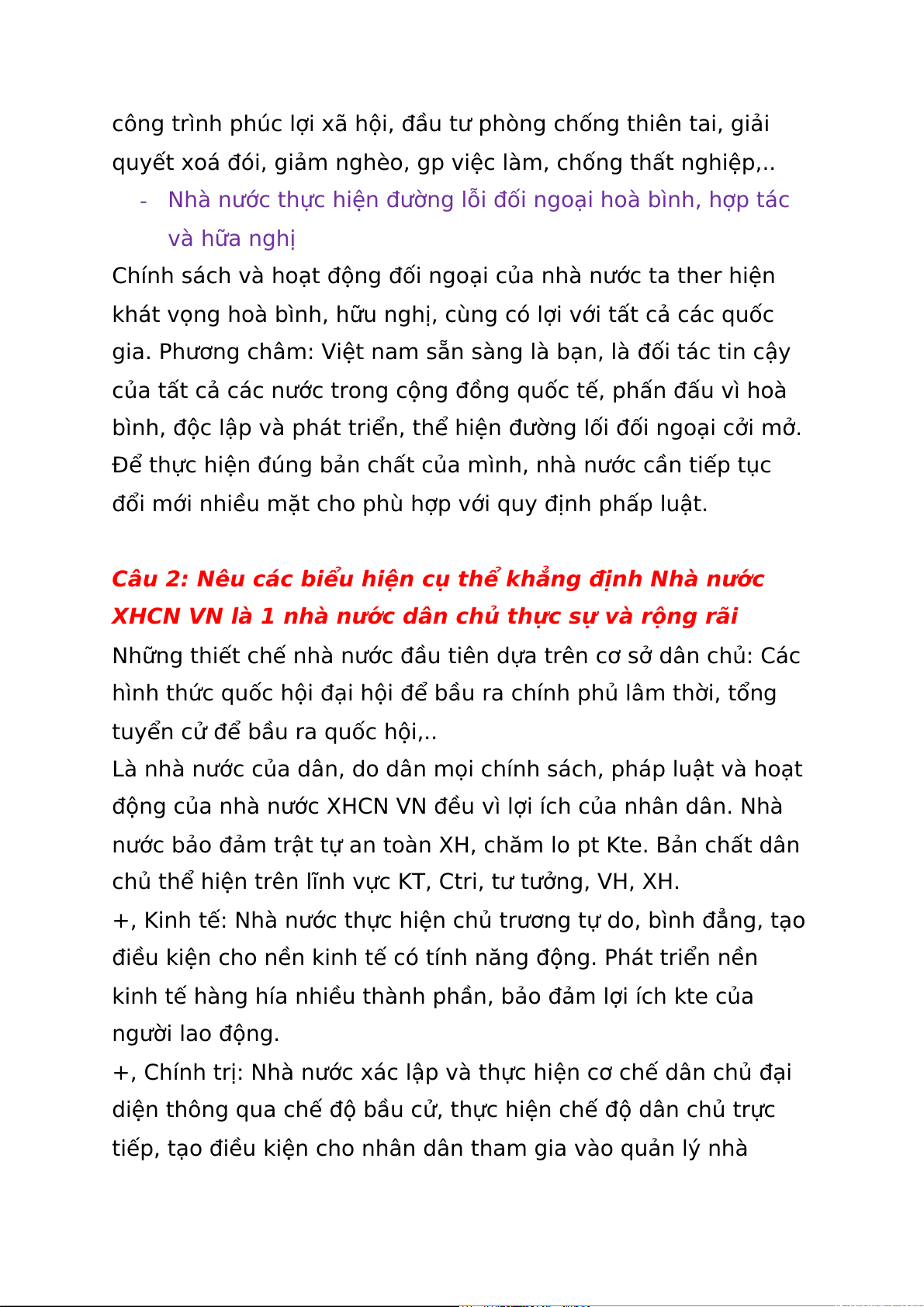 Câu 2: Nêu các biểu hiện cụ thể khẳng định Nhà nước