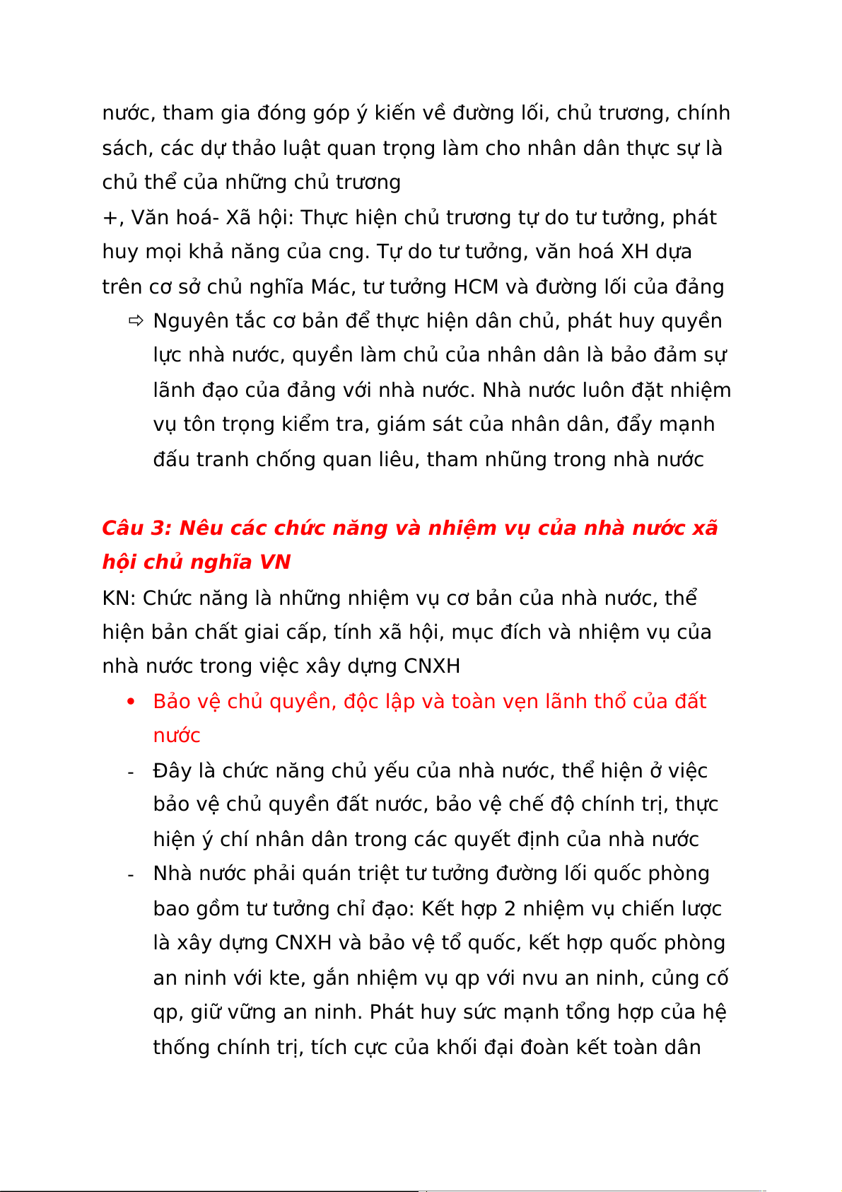 Câu 3: Nêu các chức năng và nhiệm vụ của nhà nước xã hội chủ nghĩa VN
