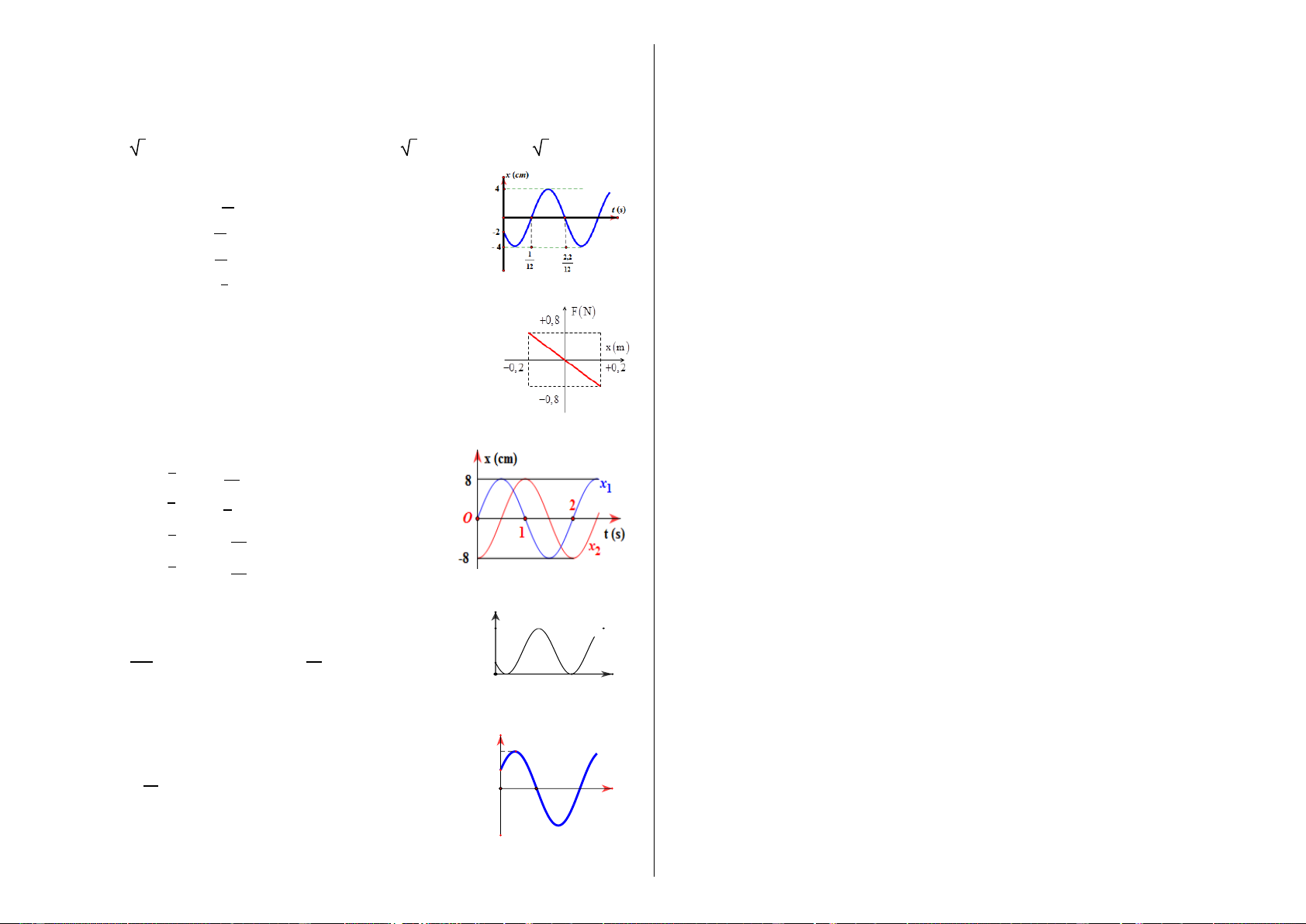 Câu 35. Hai dao động điều hoà cùng phương có các phương trình lần lượt là x1 = 4cos100t (cm) và