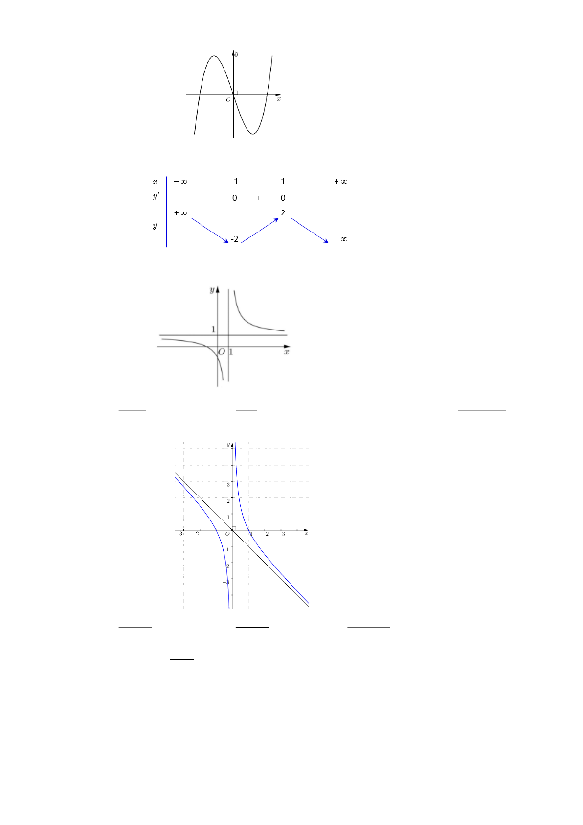 Câu 1.4: Cho hàm số y = f (x) có đồ thị như hình. Hàm số đã cho có điểm cực đại là: A. 1 . B. -1 . C. 2 . D. -2 .