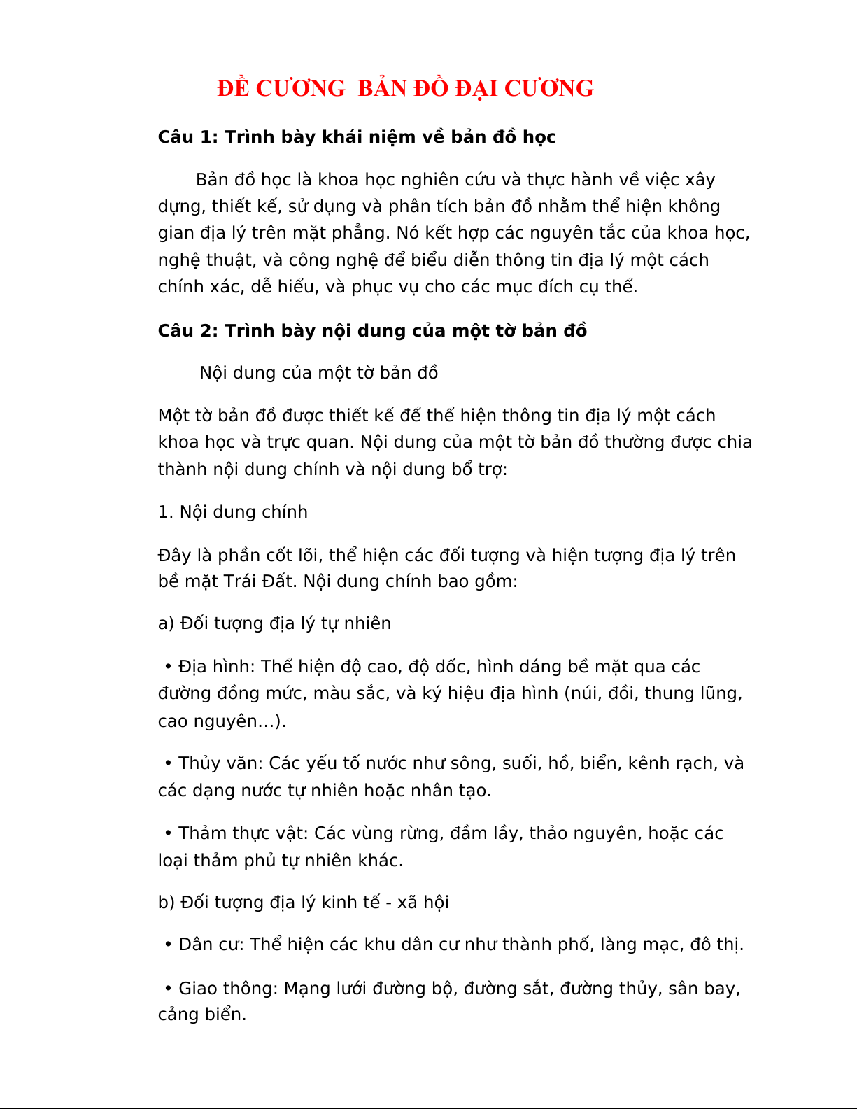 ĐỀ CƯƠNG BẢN ĐỒ ĐẠI CƯƠNG