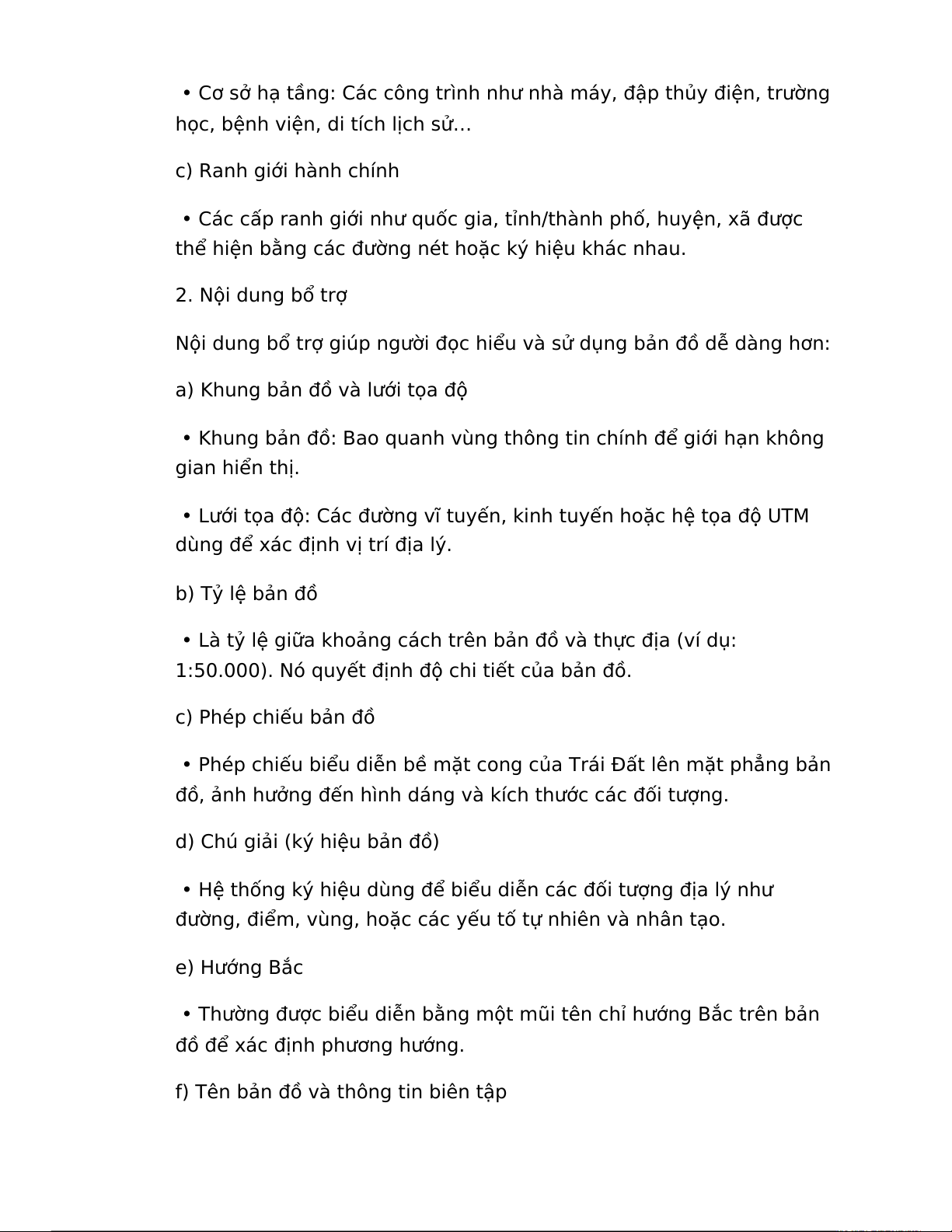 1:50.000). Nó quyết định độ chi tiết của bản đồ. c) Phép chiếu bản đồ