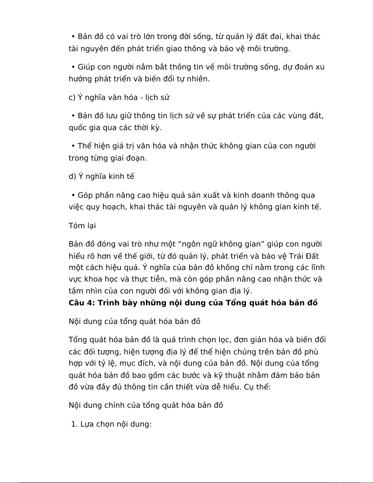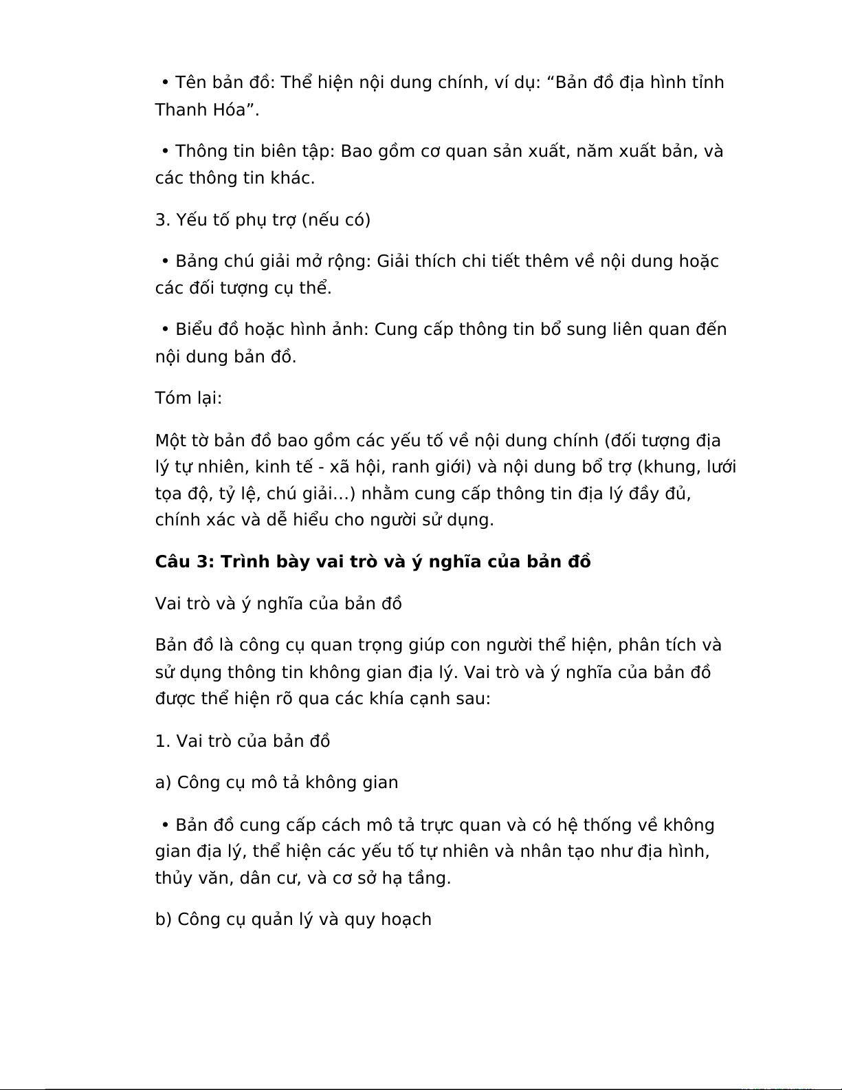 Câu 3: Trình bày vai trò và ý nghĩa của bản đồ