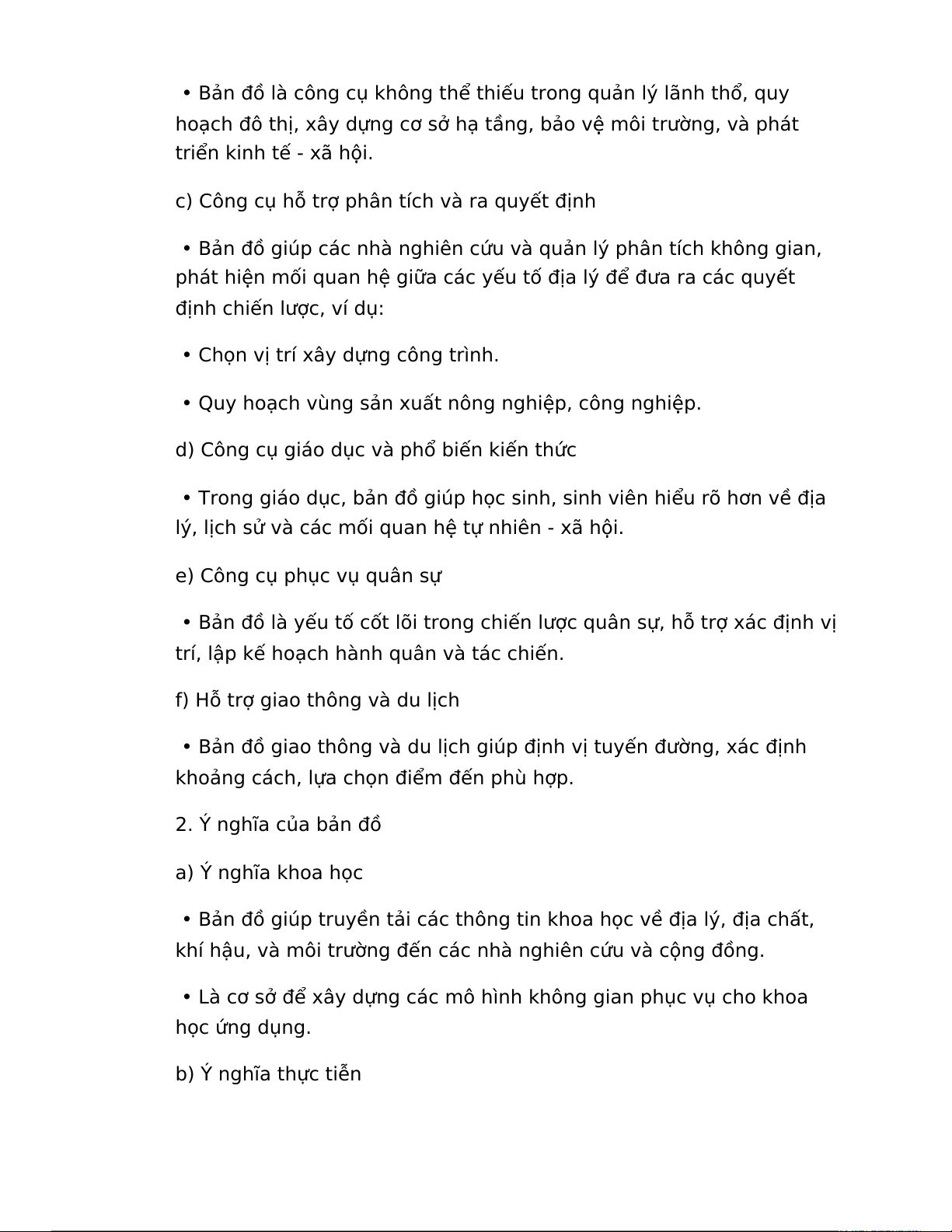 khoảng cách, lựa chọn điểm đến phù hợp. 2. Ý nghĩa của bản đồ a) Ý nghĩa khoa học