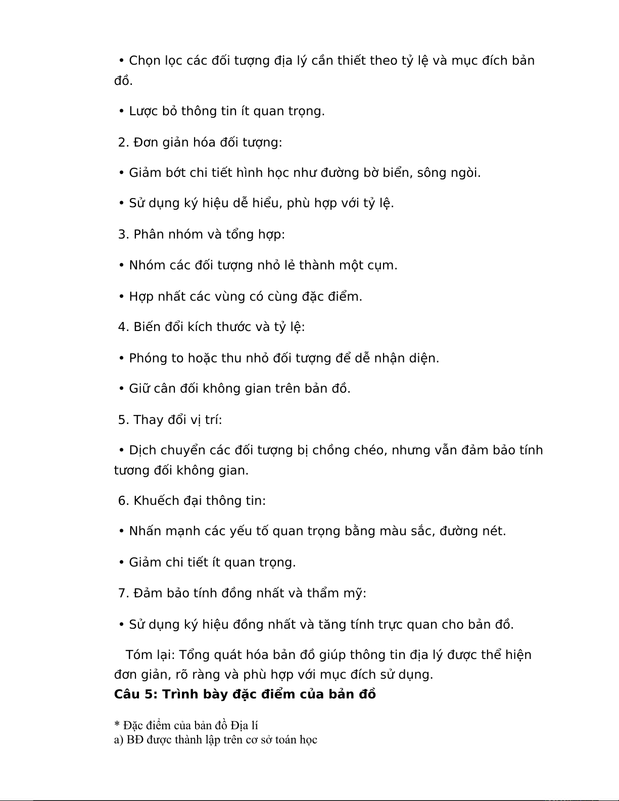 Câu 4: Trình bày những nội dung của Tổng quát hóa bản đồ