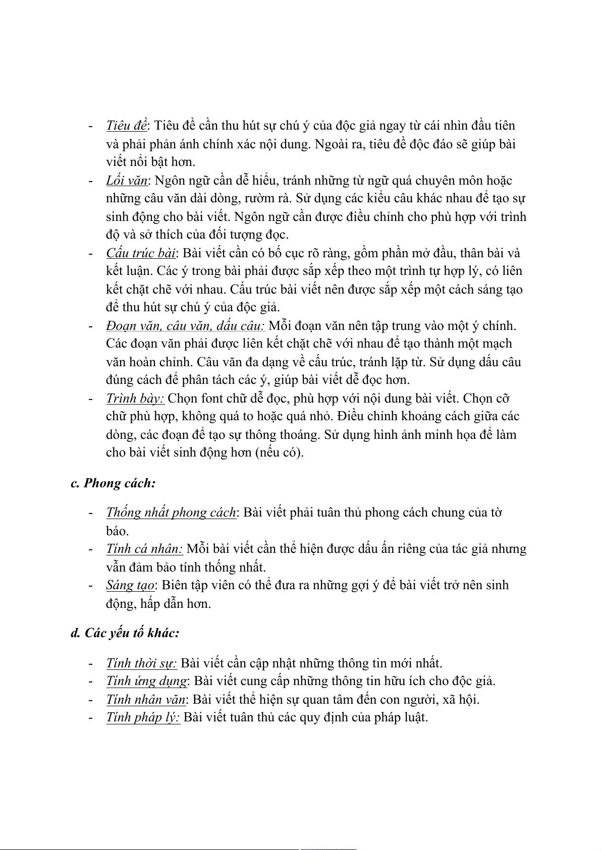 những bài viết chất lượng, đáp ứng nhu cầu của độc giả. Trong quá trình làm việc,
