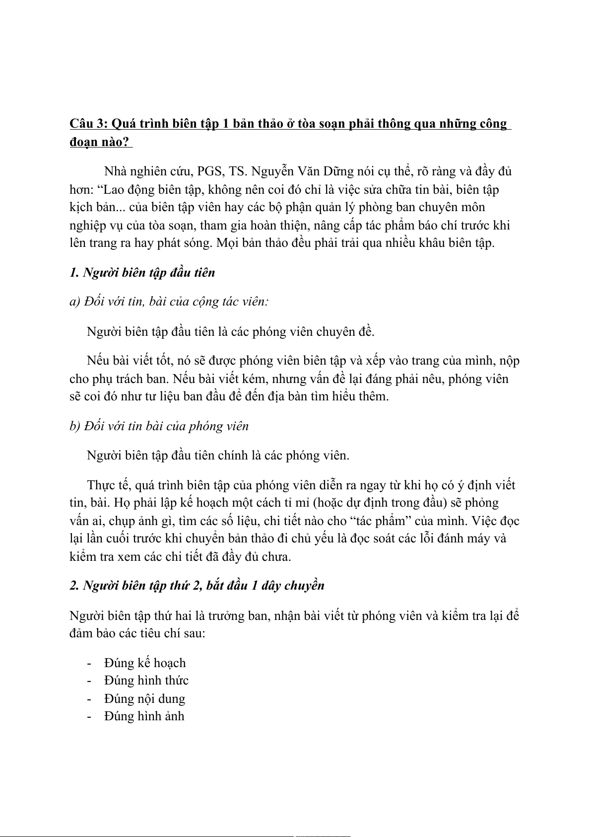 Câu 3: Quá trình biên tập 1 bản thảo ở tòa soạn phải thông qua những công