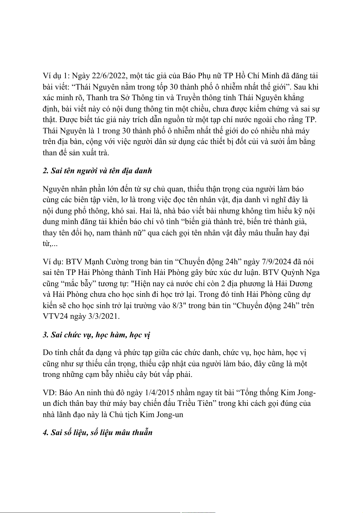 tính chính xác, khách quan của thông tin, tránh vi phạm pháp luật và góp phần định