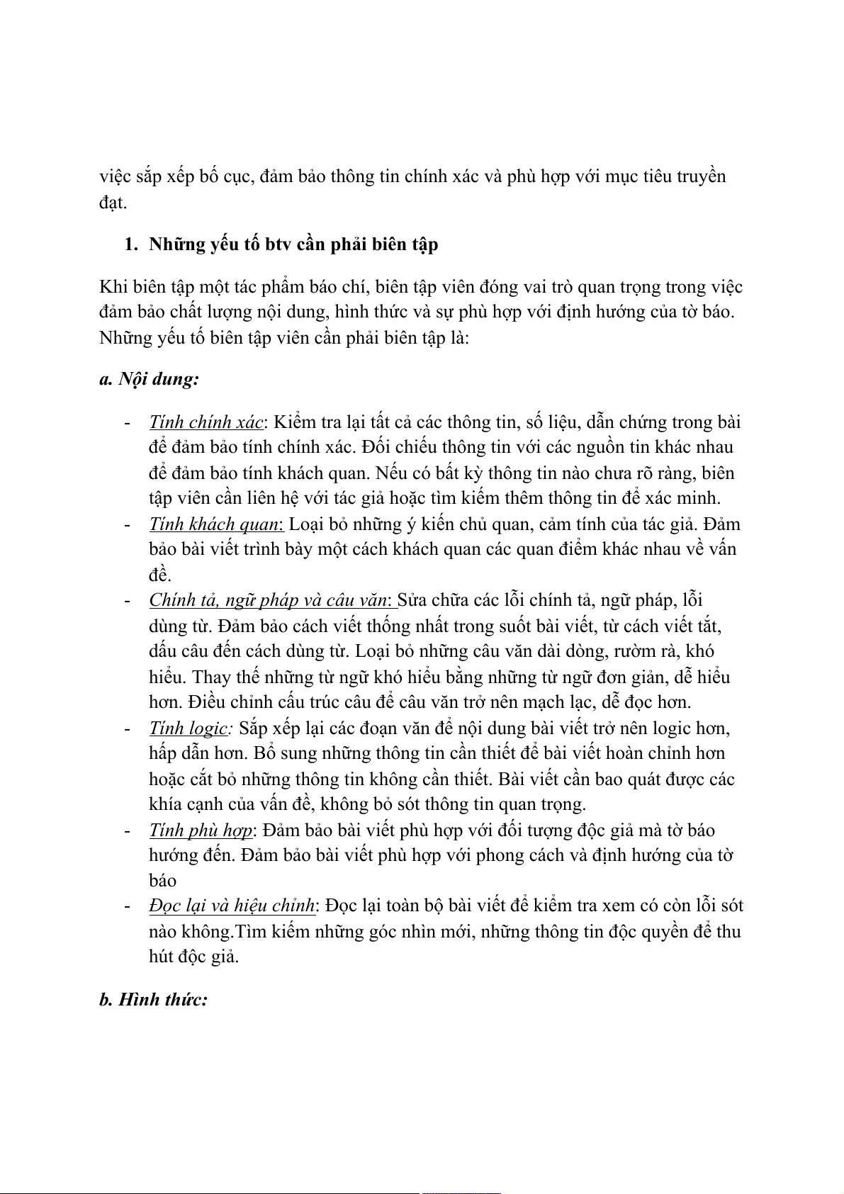 vấn, bài bình luận... để có thể biên tập phù hợp và tạo ra các sản phẩm báo chí chất lượng.