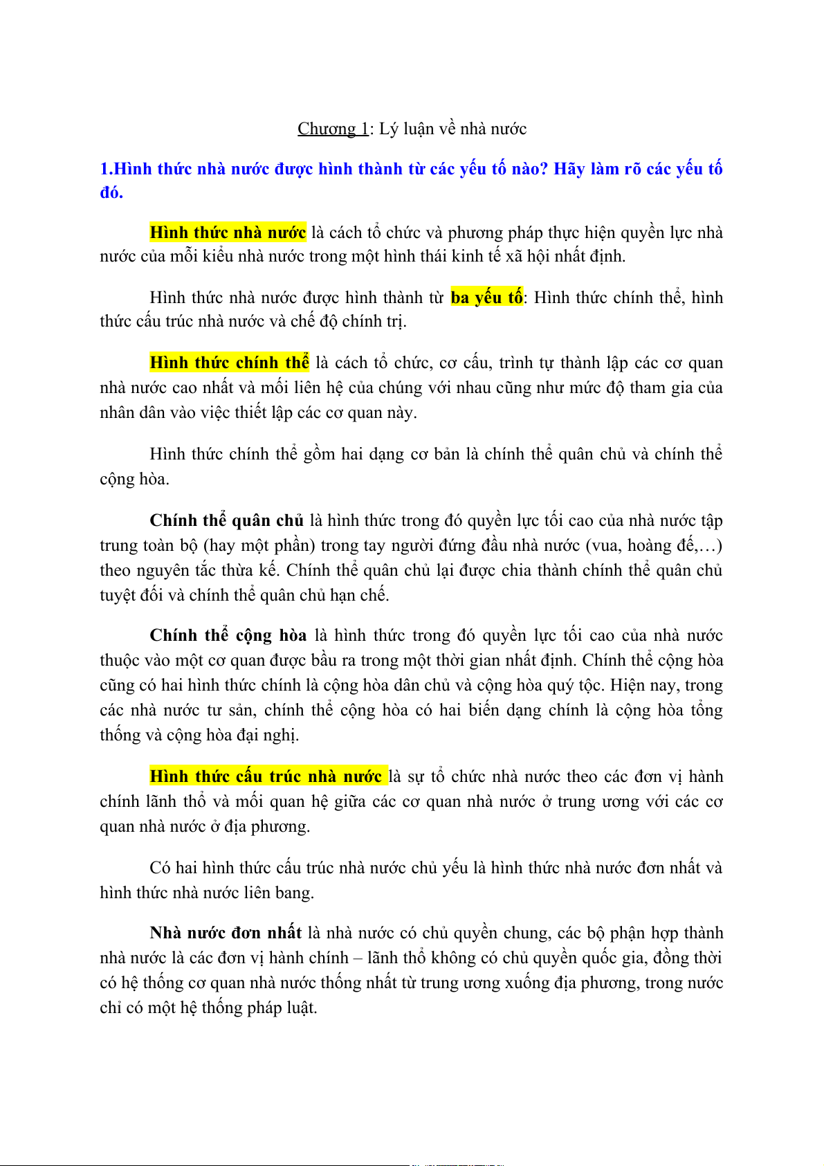 1.Hình thức nhà nước được hình thành từ các yếu tố nào? Hãy làm rõ các yếu tố đó.