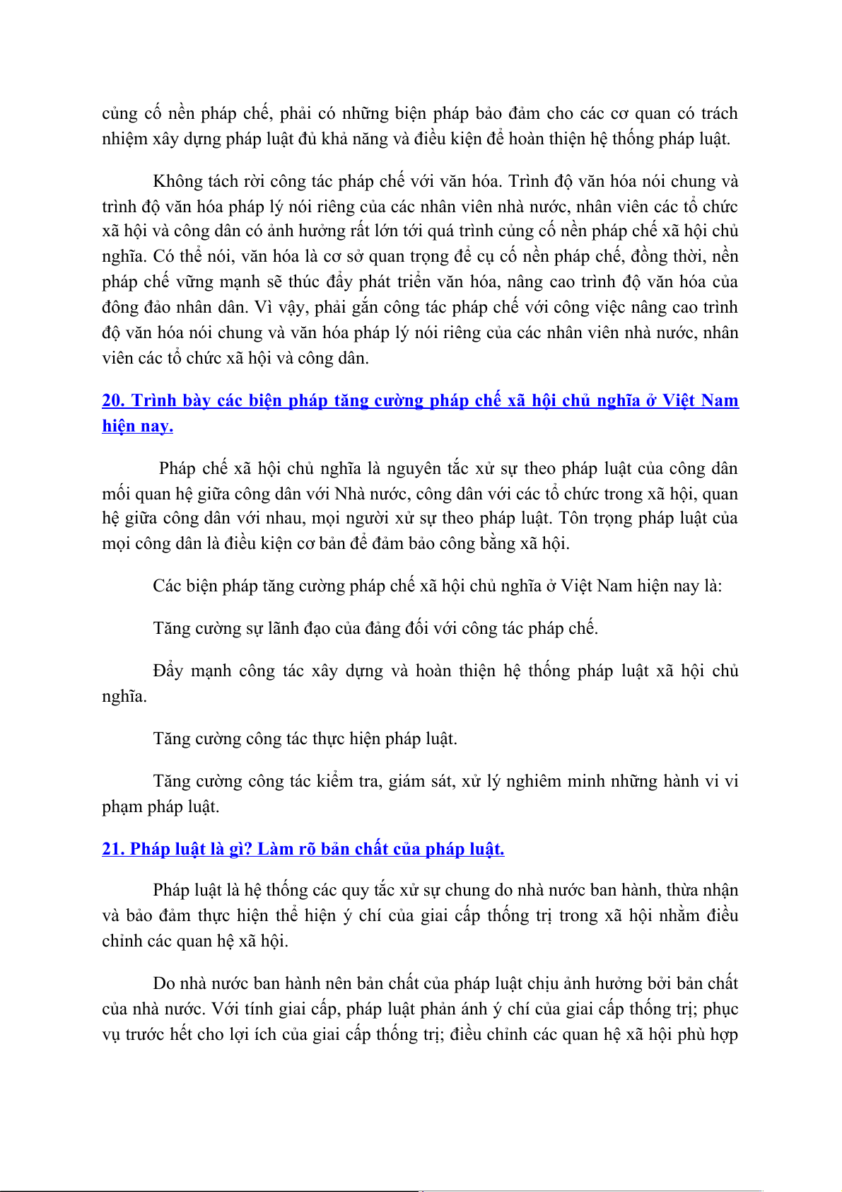 20. Trình bày các biện pháp tăng cường pháp chế xã hội chủ nghĩa ở Việt Nam hiện nay.