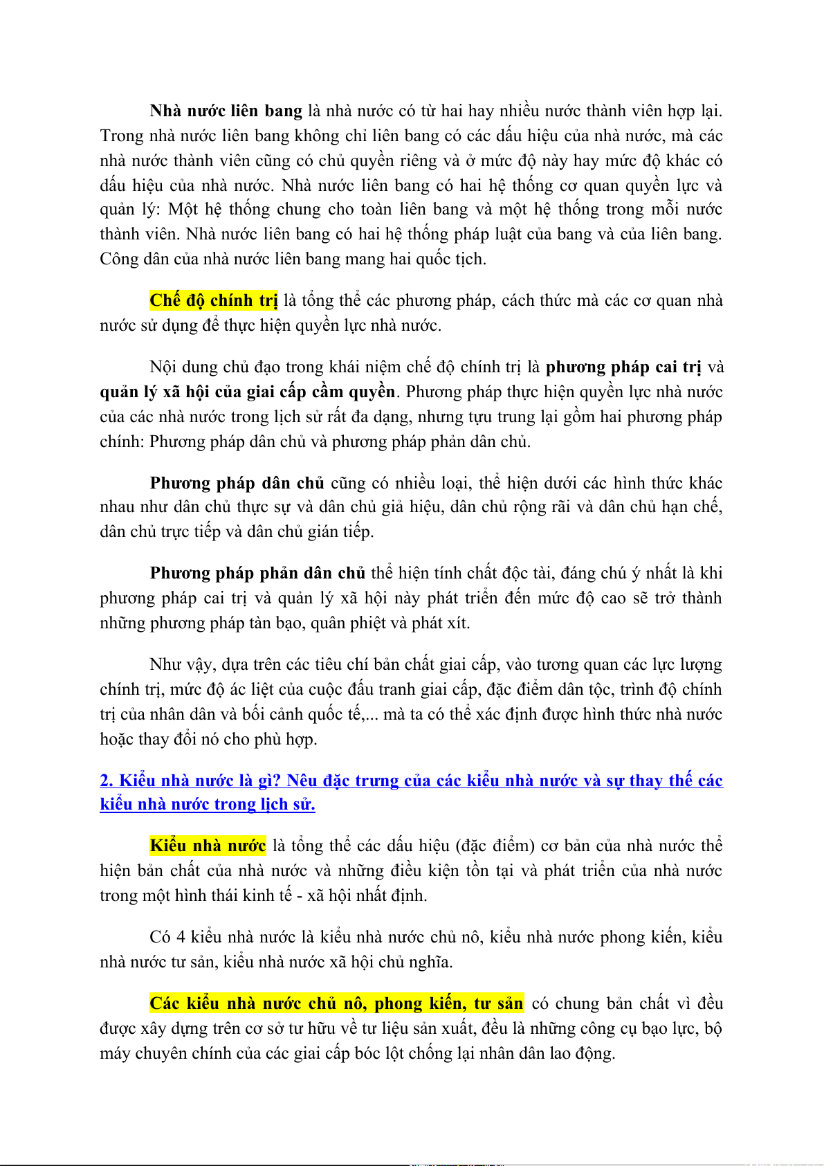 2. Kiểu nhà nước là gì? Nêu đặc trưng của các kiểu nhà nước và sự thay thế các