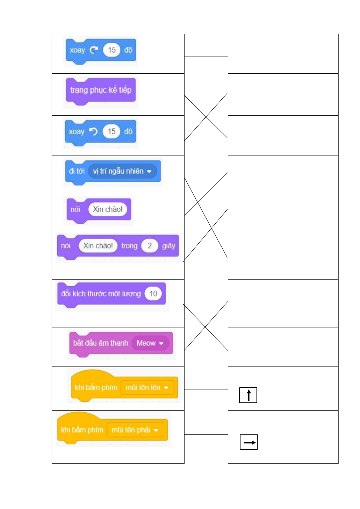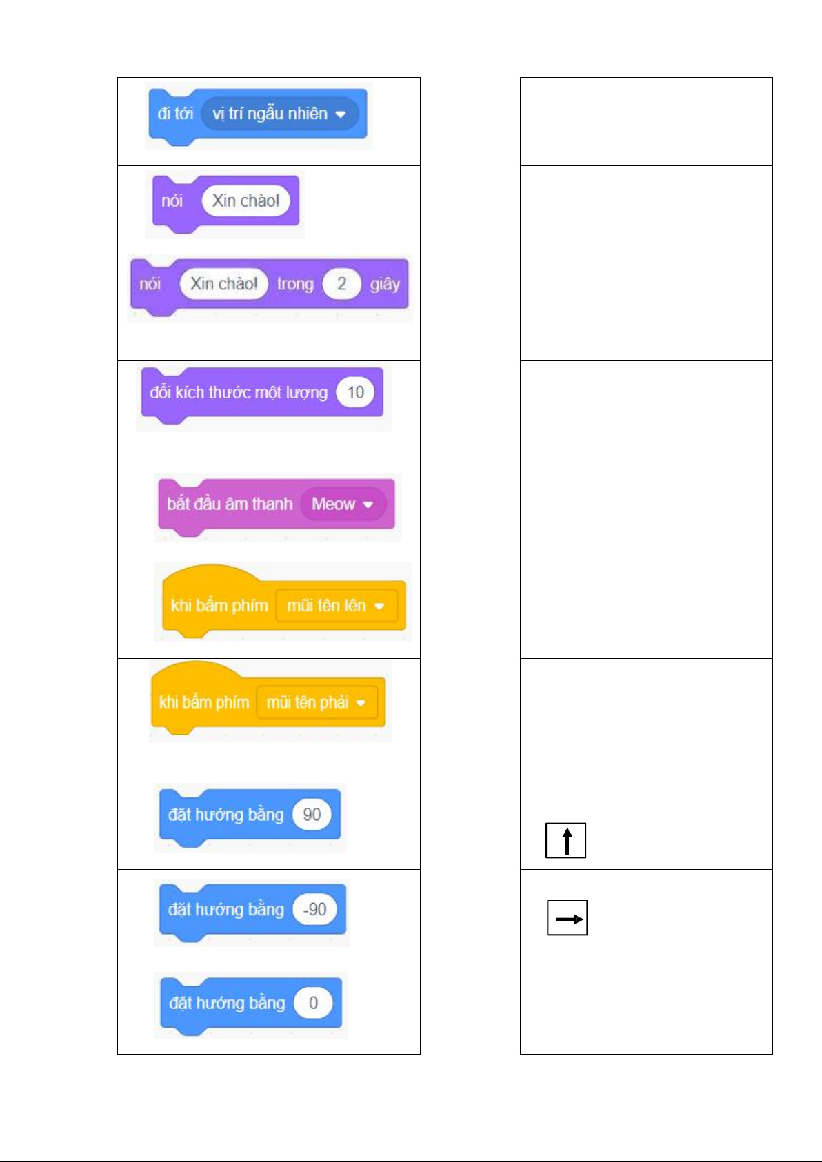 Câu 9. Trong chương trình Scratch lệnh có ý nghĩa gì?