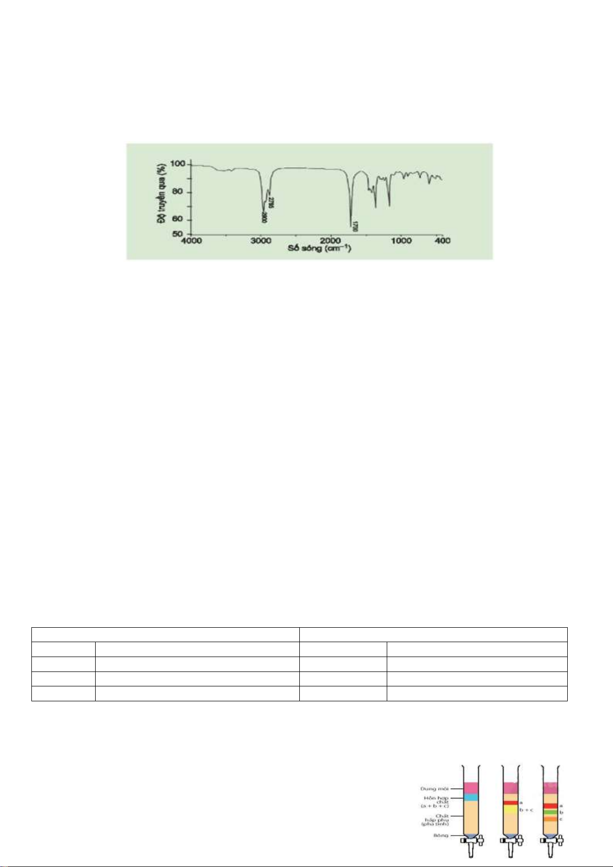 phân tích nguyên tố và đo phổ khối lượng. Kết quả khảo sát được trình bày trong bảng sau: Hợp chất %C %H %O