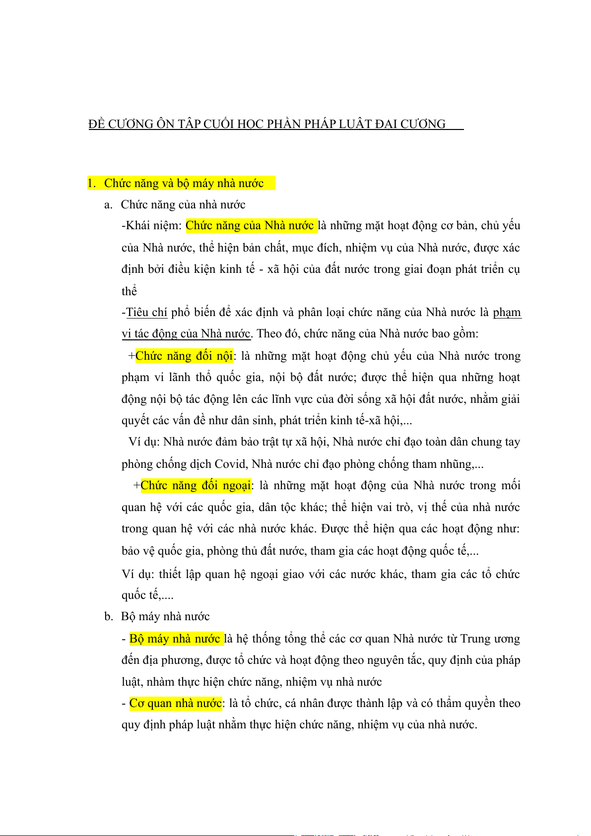 ĐỀ CƯƠNG ÔN TẬP CUỐI HỌC PHẦN PHÁP LUẬT ĐẠI CƯƠNG