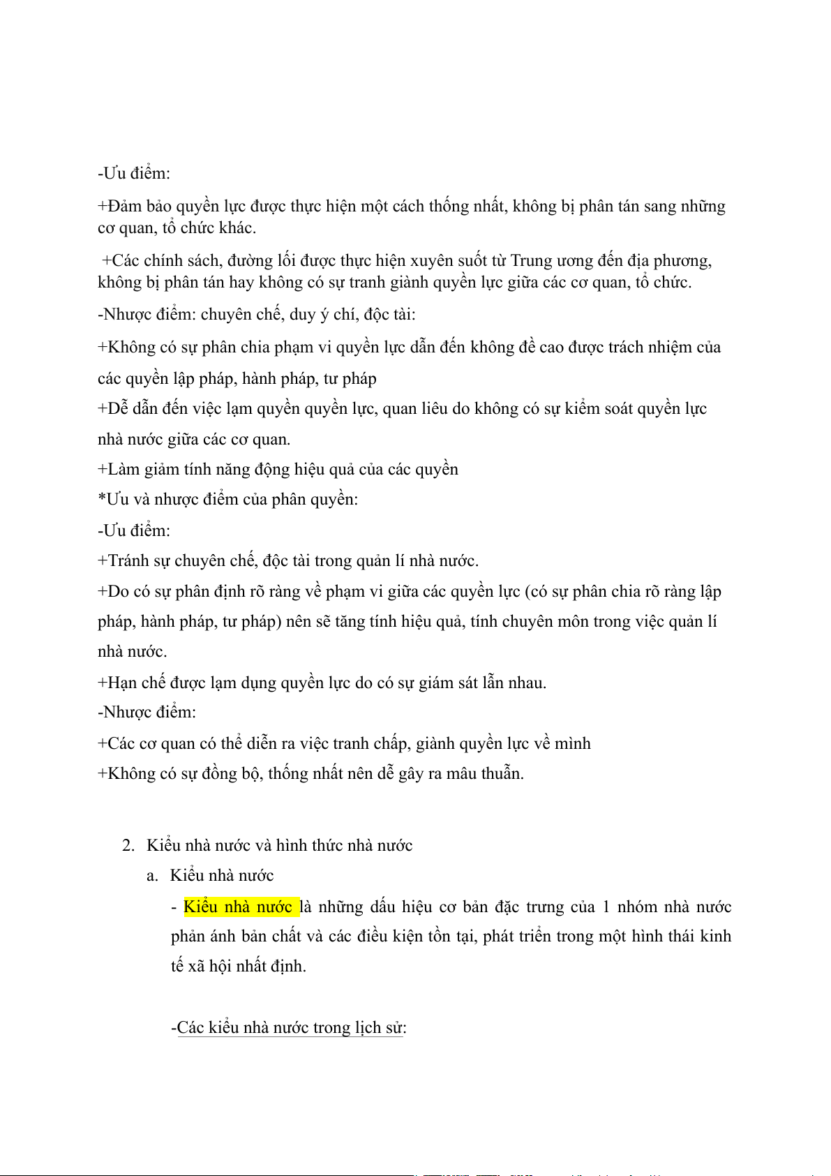 *Ưu điểm và Nhược điểm của tập quyền: -Ưu điểm: