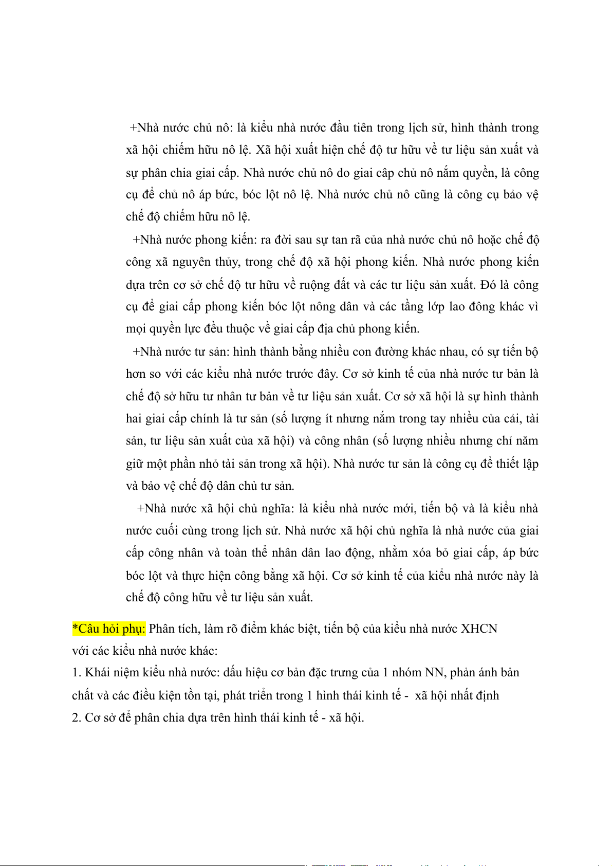 -Các kiểu nhà nước trong lịch sử: